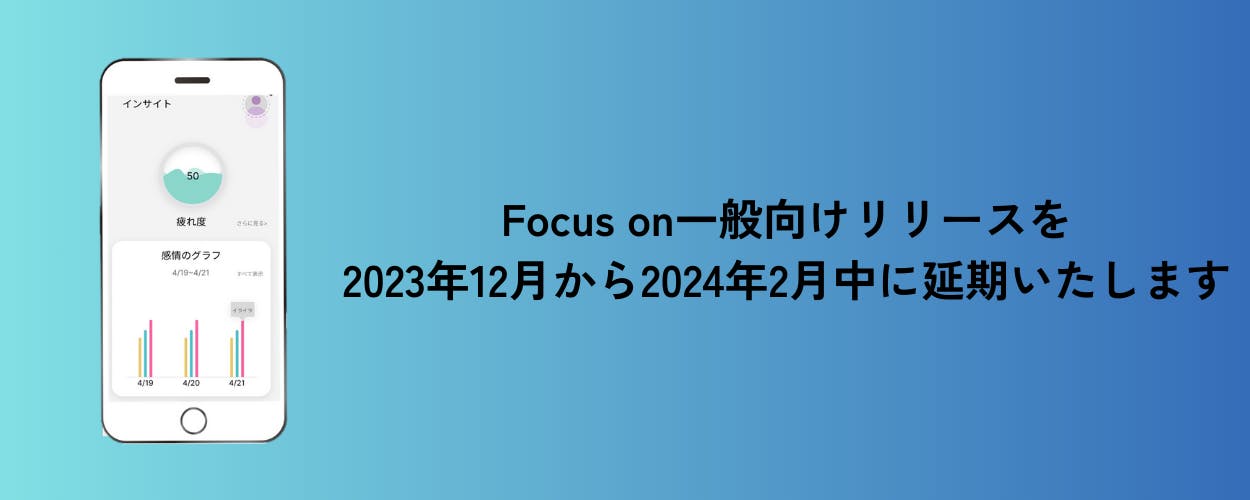 タイトルにもありますように、Focus onは一般リリースを【2023年12月中】から【2024年2月中】へ延期いたします。
