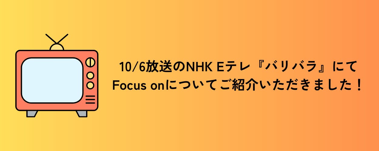 先日、10/6にNHKバリバラにて、立命館大学特集の一環として、Focus onについて取り上げていただきました!