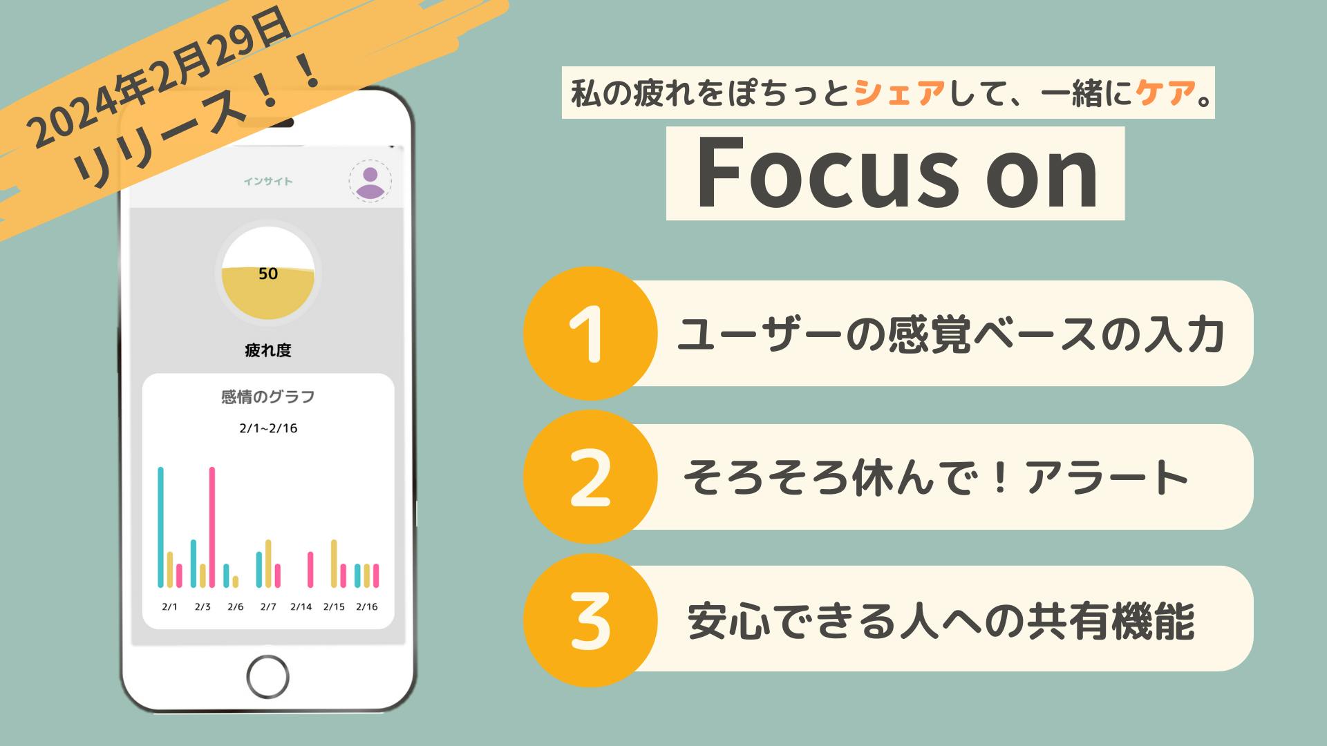 クラウドファンディング支援者様をはじめとした多くの方々のご協力のもと、2024年2月29日に”普通”を頑張る人たちの日常を支えるアプリ「Focus on」を一般向けにリリースすることができました。