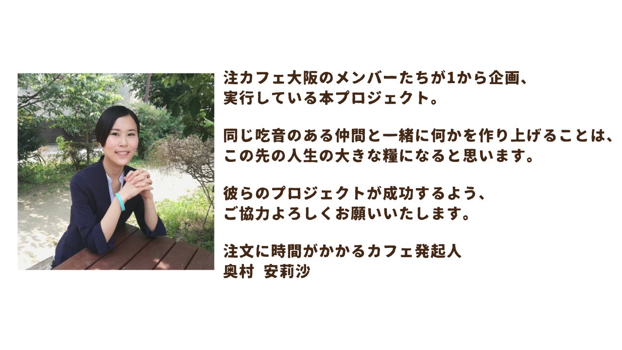 *設定金額を超えた場合、今後「注文に時間がかかるカフェ」発起人奥村さんといった吃音当事者を中心とした活動資金に充てさせていただきます。