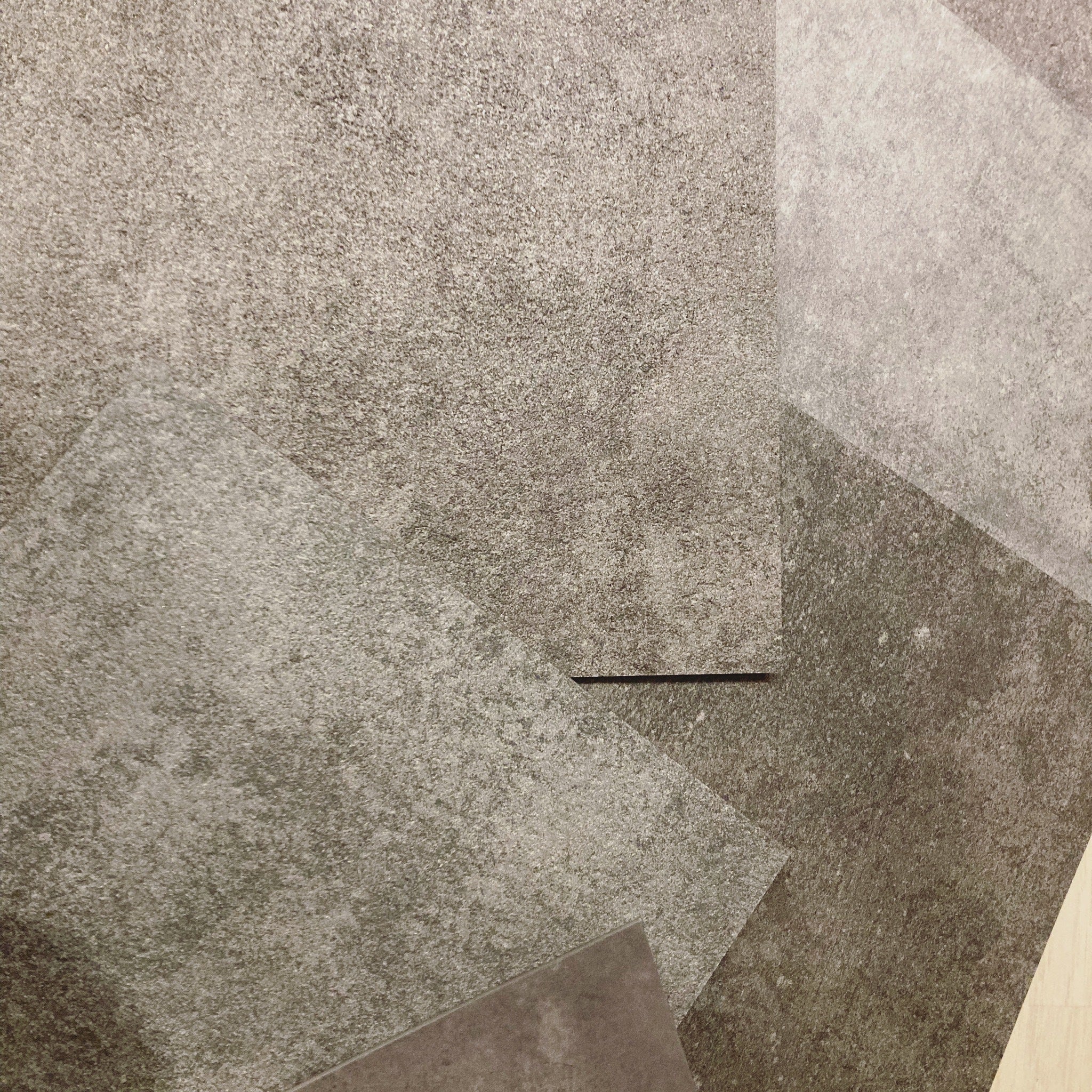 先日、着工前の最後の内装の打ち合わせがありました。サロンの床材を″コンクリートっぽいもの″とお話ししたらこんなサンプルをもらいました。マットなものちょっと光るもの、些細な凹凸のあるものわざと汚れのような模様があるもの奥が深いですね…!