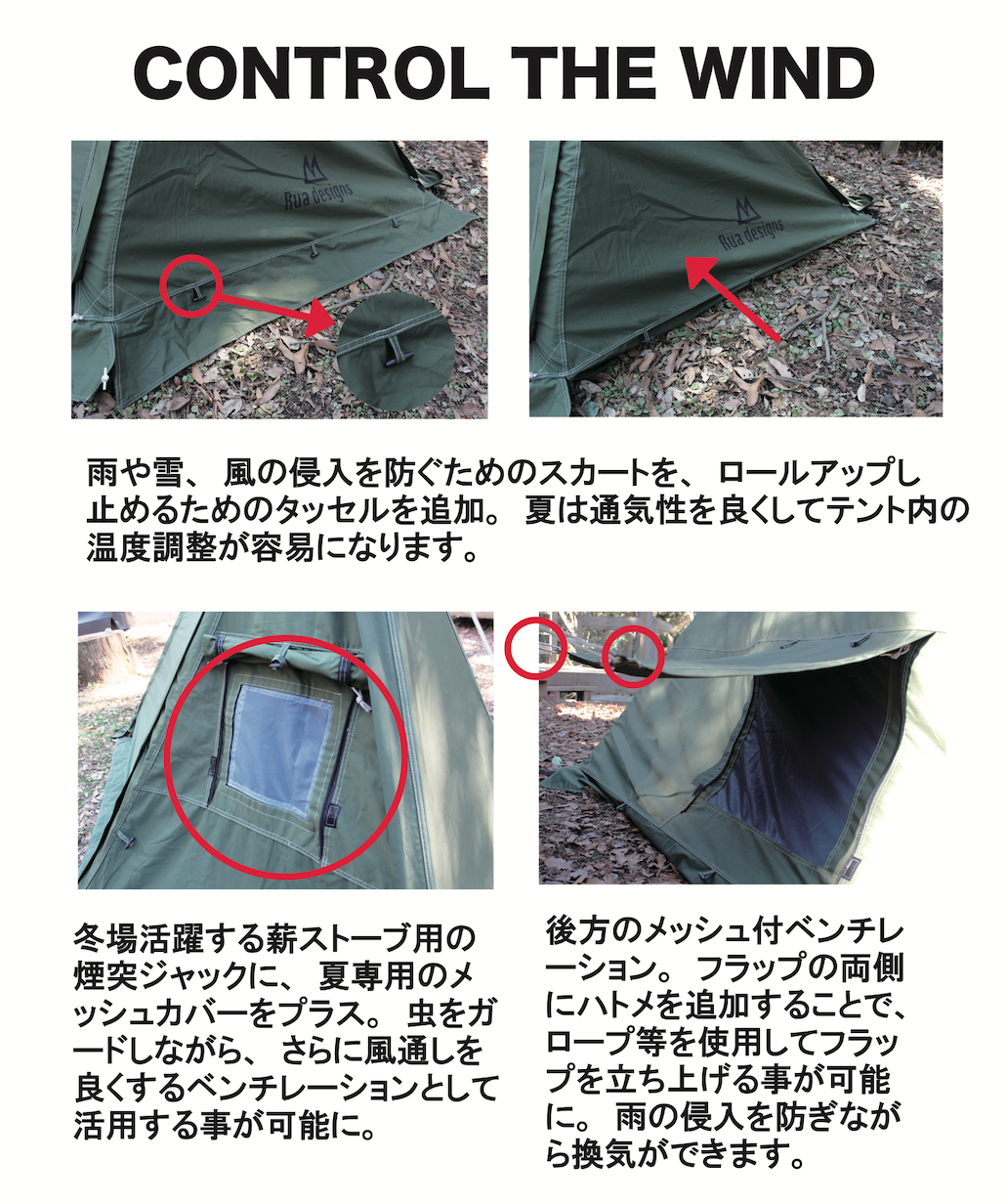 3 、テント内で火器を使用される場合は、必ず換気をしてください。(火器使用はメーカーとしてはお勧めしていませんので、あくまで自己責任でお願いいたします。)