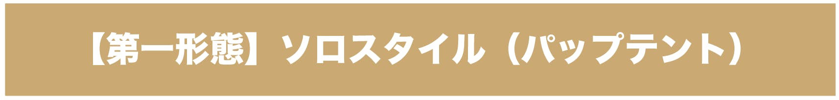 基本形態であるパップテントスタイル。「transHOME-EX/OPEN-TOP」はテント内の高さが160cmあります。一般的なパップテントはテント内の高さが100cm~130cm程度しかない場合が多く、中での移動は体を折り曲げないとできず、腰の負担が大きい場合があります。「transHOME-EX/OPEN-TOP」なら、少し屈む程度でテント内を行動でき、その負担はかなり軽減できると考えています。さらにソロキャンプとしては大きめのサイズ感で設計されています。しかもテントを立ち上げるポールは、二股ポールを採用しているため、デッドスペースが少なく快適な居住空間が確保できます。