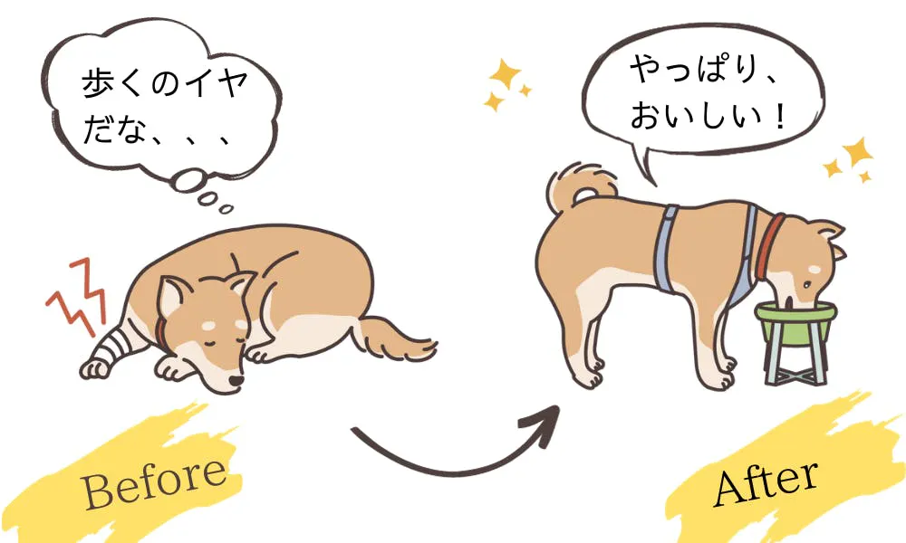 寝たきりが続くと筋肉や関節が強張って床ずれを起こしたりと、ワンちゃんは人以上に寝たきりによる負荷が大きいと言われています。