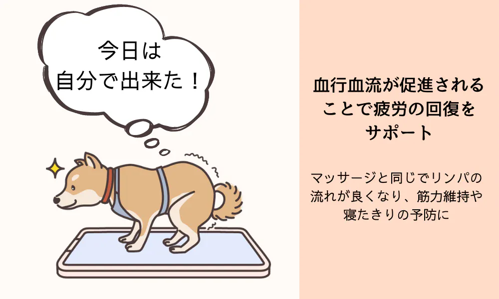 ワンちゃんが横になるだけでRKL wanサポーターと同様の効果に期待できます。