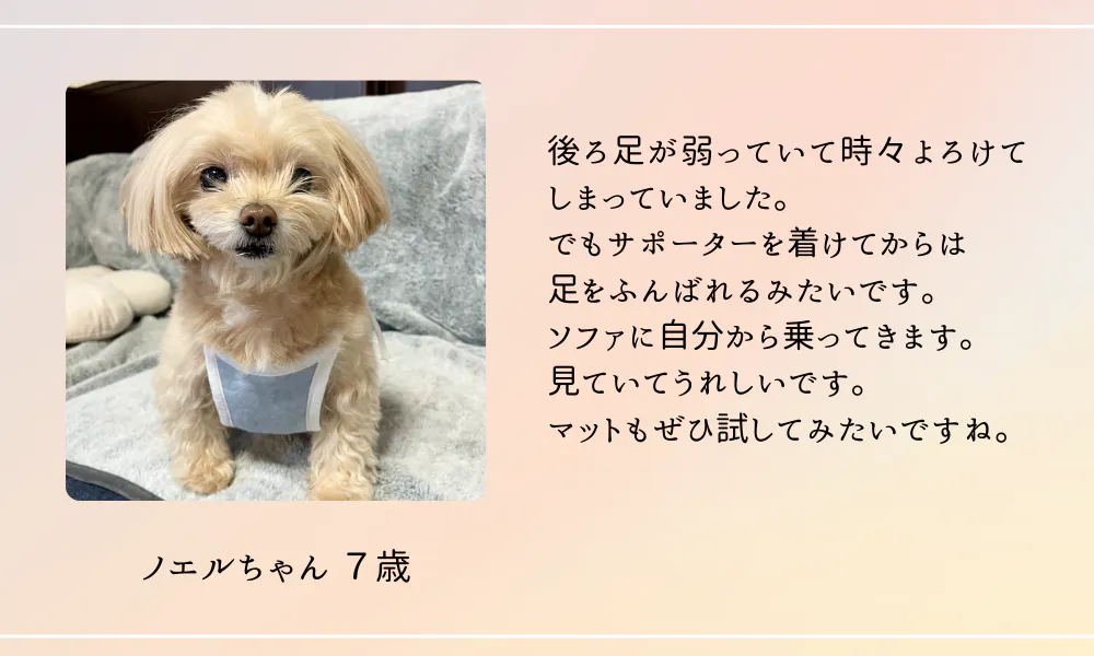 ※ワンちゃんが着用しているサポーターはモニター様用のサンプルです。