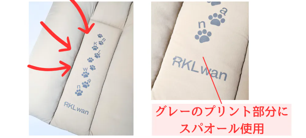 ワンちゃんの体に触れる内側に独自の形でスパオールプリントを施しています。