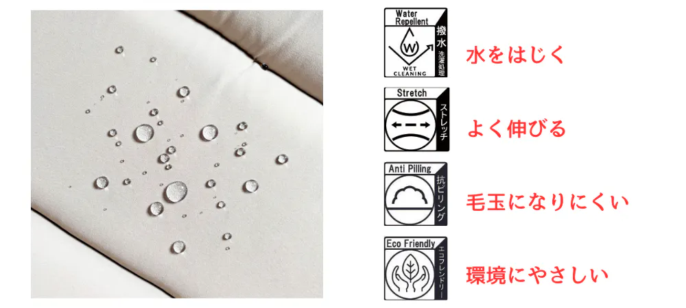 素材 ポリエステル67%・複合繊維33%(リサイクル原料使用率67%)
