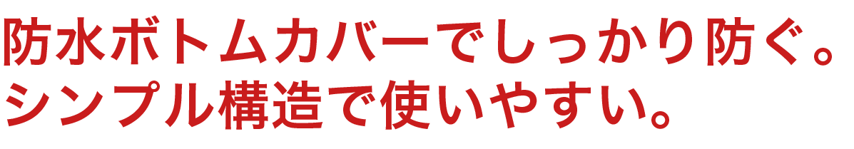 シンプルな構造の防水ボトムカバーを搭載しているから水の侵入をしっかり防ぎます。使いやすいのもポイント。