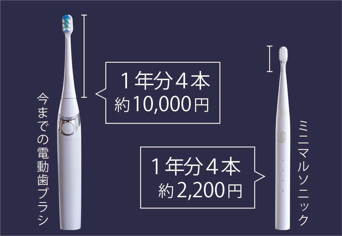 電動歯ブラシの替えブラシはなんであんなに高価なの!?続けられない!そう思ったことはありませんか?ミニマルソニックは構造上替えブラシを安価に生産できるのでコストパフォーマンス抜群です。