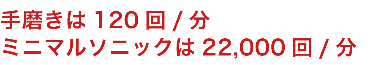ミニマルソニックは2分間で44,000回磨けますが、手磨きで44,000回磨くには6.1時間も必要です!圧倒的な時短&効率化&生産性アップを実現するミニマルソニックを是非、お試し下さい!