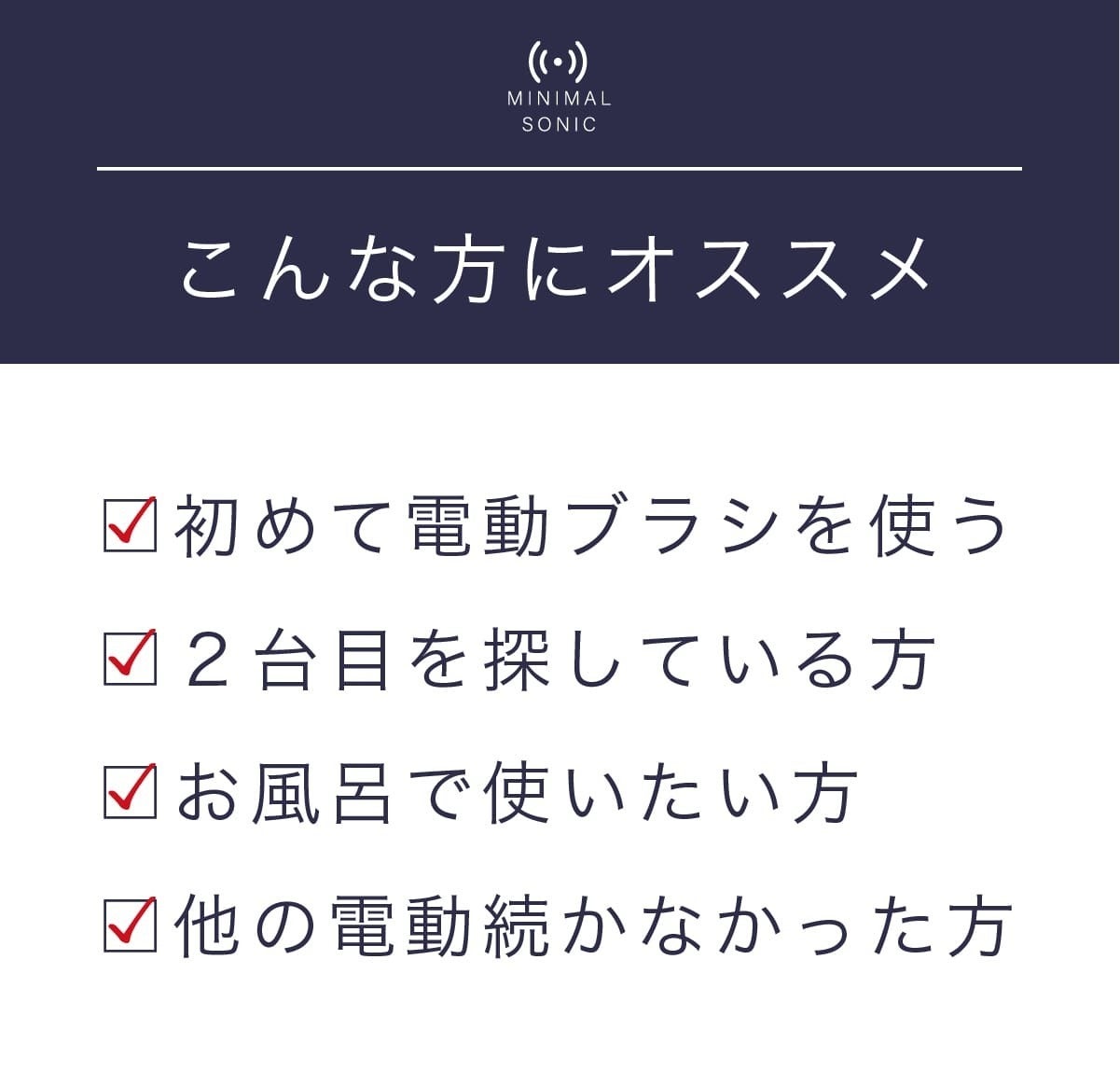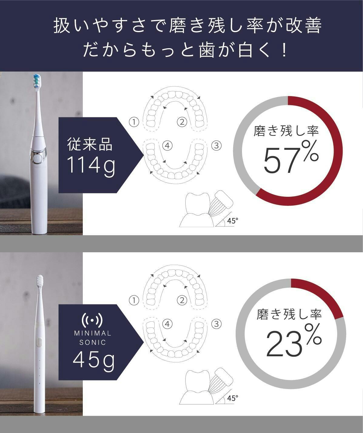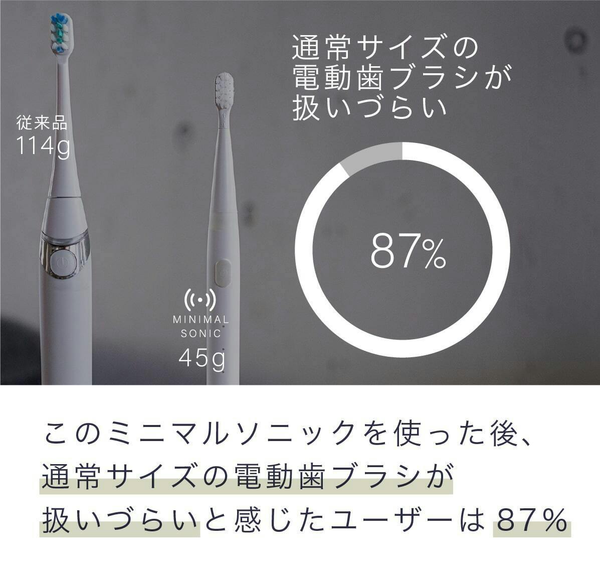 私達は日本の電動歯ブラシ普及率16%をなんとかしたいと考え、ミニマルソニックを誕生させました。口腔内のケアは大変重要なものであるにも関わらず、そのツールの進歩はまだまだです。ミニマルソニックが少しでも日本の電動歯ブラシ普及のきっかけになれば大変嬉しいです。