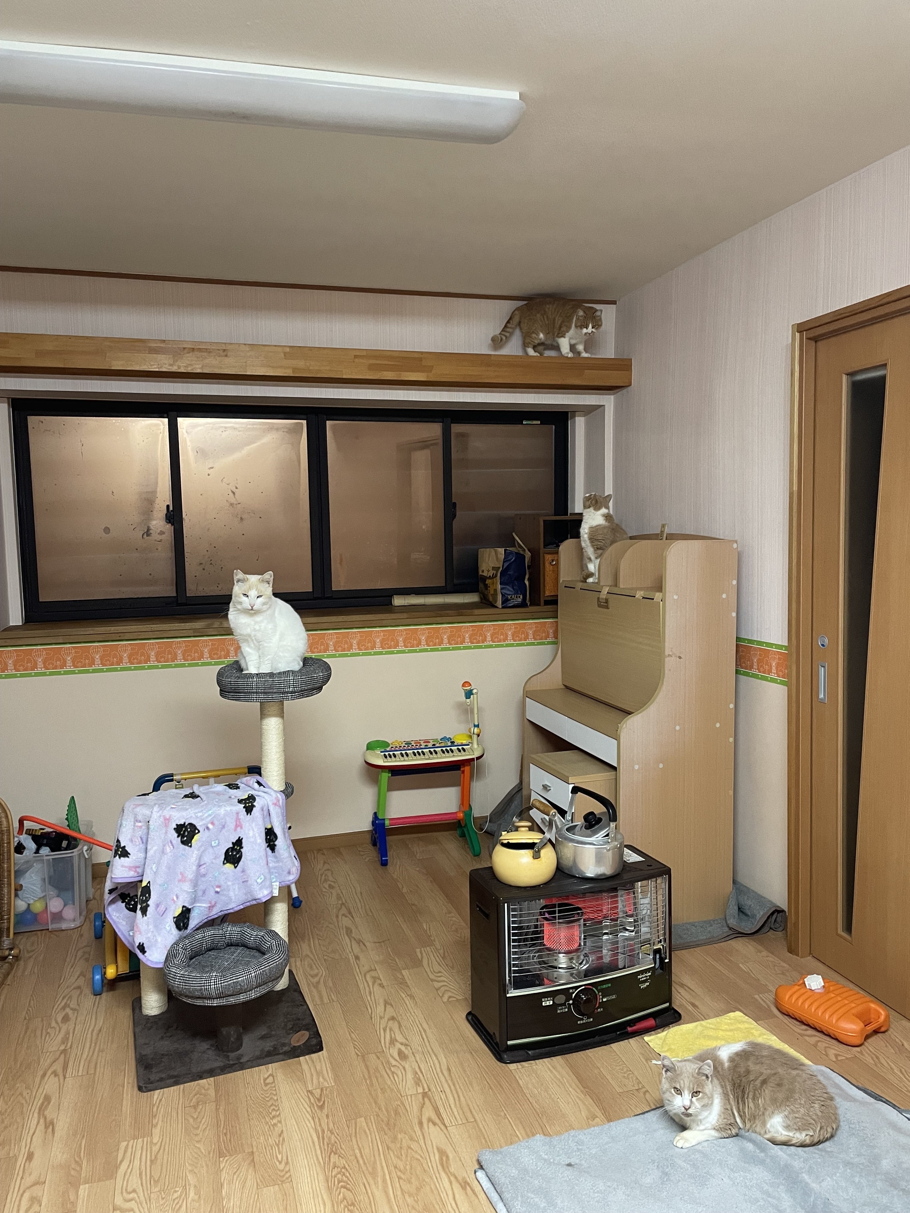 珍しく夕飯を食べてから、6匹中の何匹?(何匹いるでしょう?)がお部屋にいます。