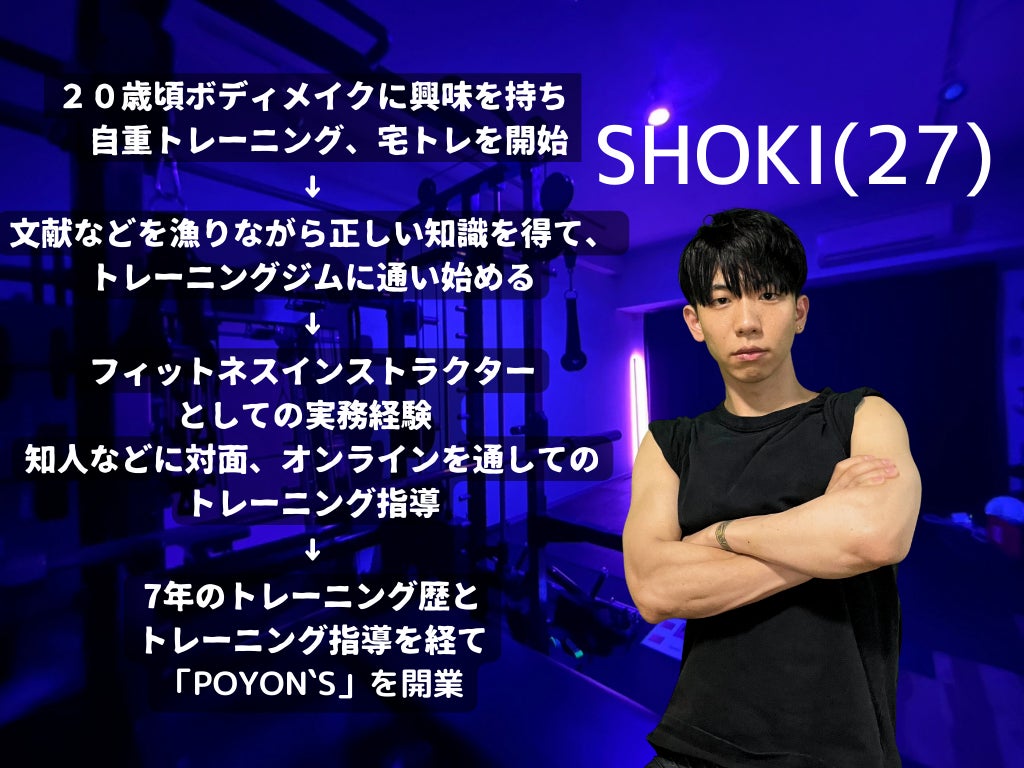 この度POYON`Sパーソナルジムを開業することとなりました「SHOKI」と申します。