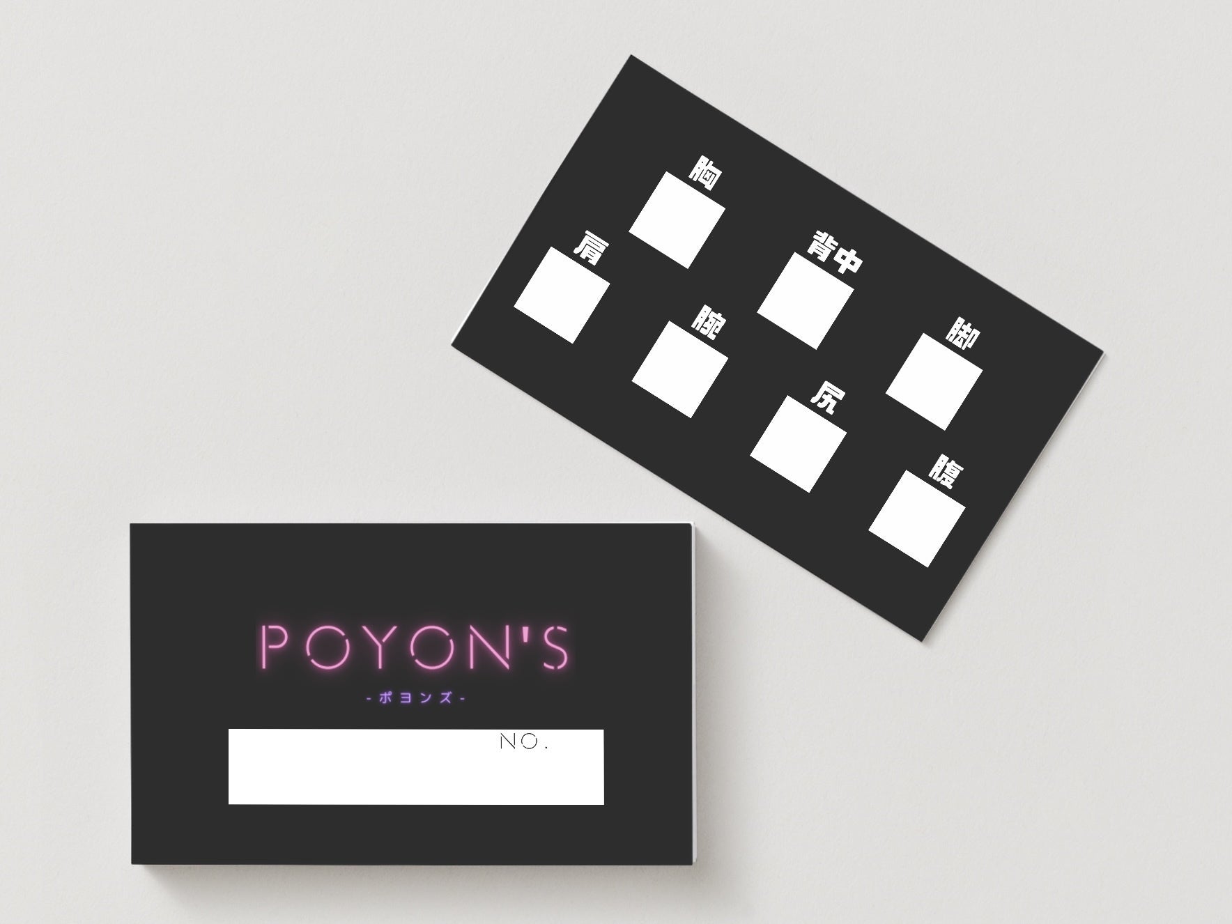 会員証の裏には各部位ごとのチェックボックスを用意しています。