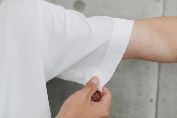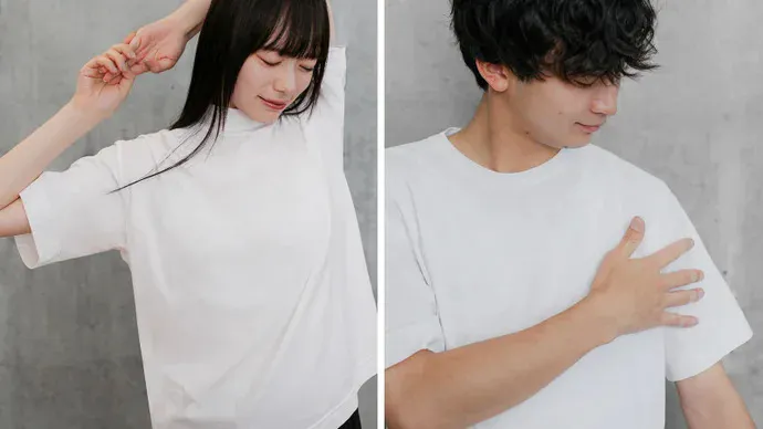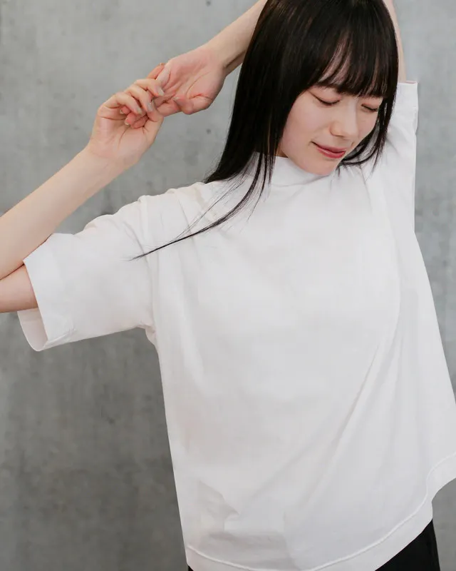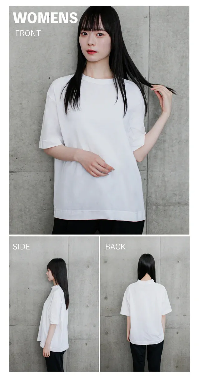 表向きはビジネスシーンでも使える綺麗めな白Tですが、着たら驚きの快適な着心地を実感できる、まさに「二刀流」白T選びでもう迷わない。そんな自信の一枚が完成しました。