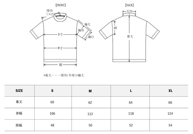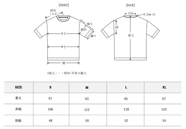 身幅、肩幅はゆったりとした着用感です。着丈はすっきりしているのでだらしなく見えずに上品な印象を与えます。