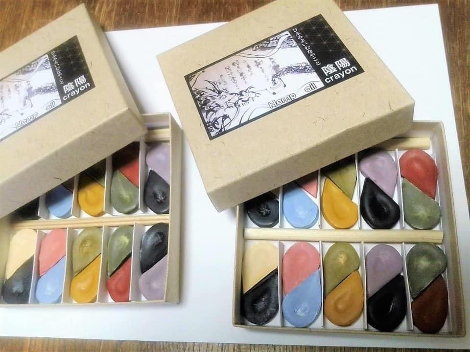 布弥オリジナルのクレヨンです。麻の実油・米糠ロウ・ベンガラ・水干本藍・麻墨で自宅制作してします。