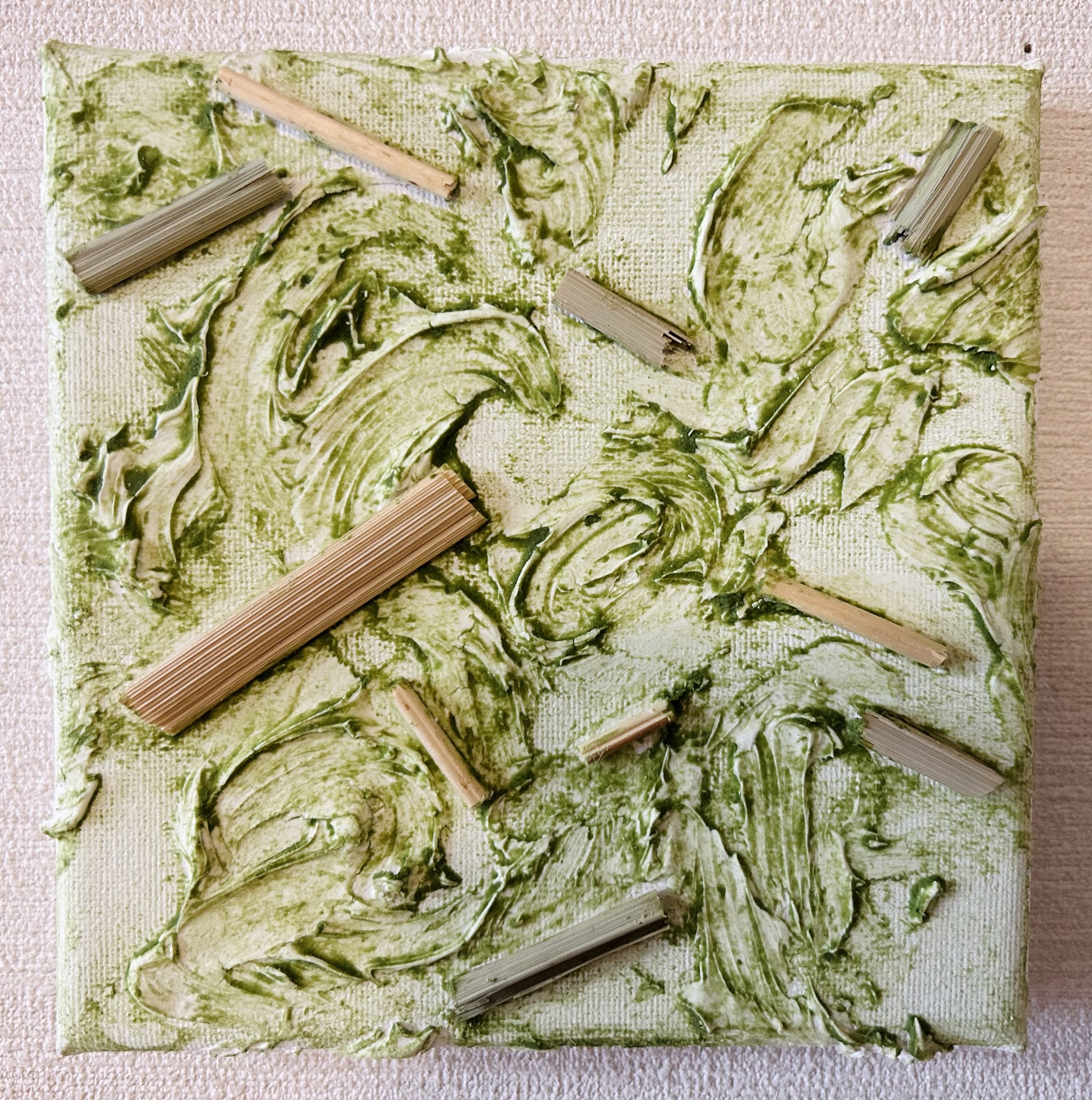 真菰(マコモ。稲科)のパウダーと、真菰の葉。麻のオガラ。ー2023年8月14日完成作品ー