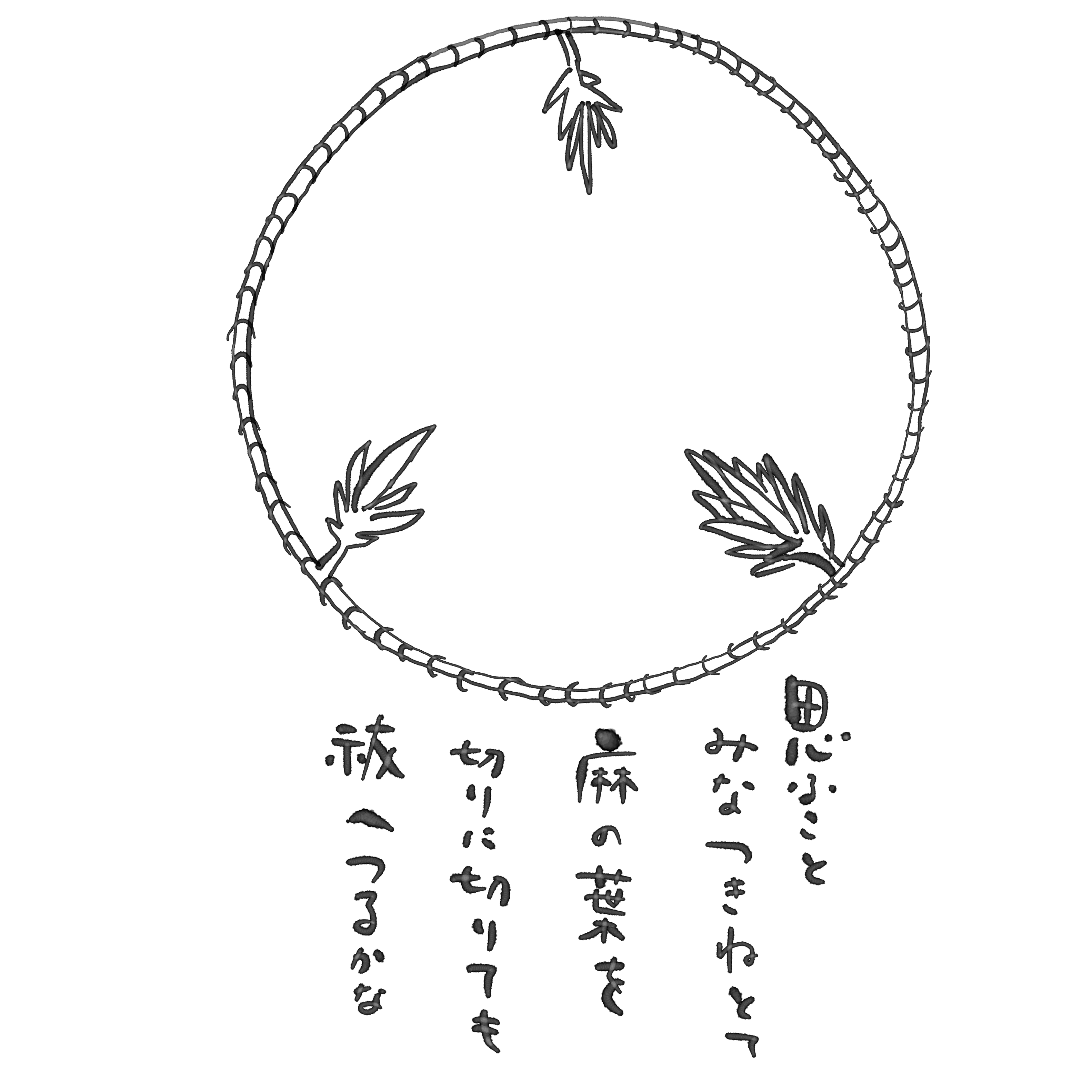 夏越大祓の時に茅の輪をくぐりながら(右回りの時)歌う和歌を添えました。