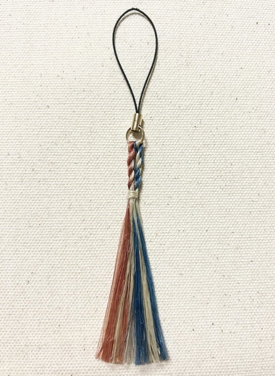 【縁結び】特級品の国産精麻(神麻・藍・茜染め)のストラップ。