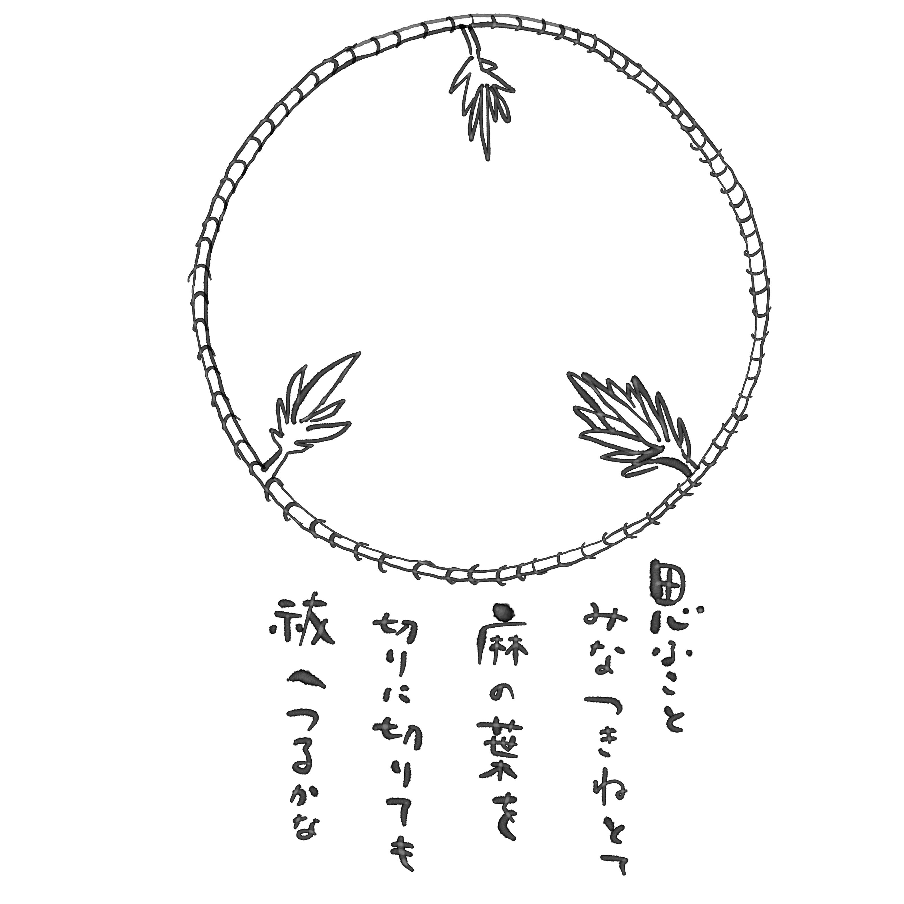 夏越大祓の時に茅の輪をくぐりながら(右回りの時)歌う和歌を添えました。