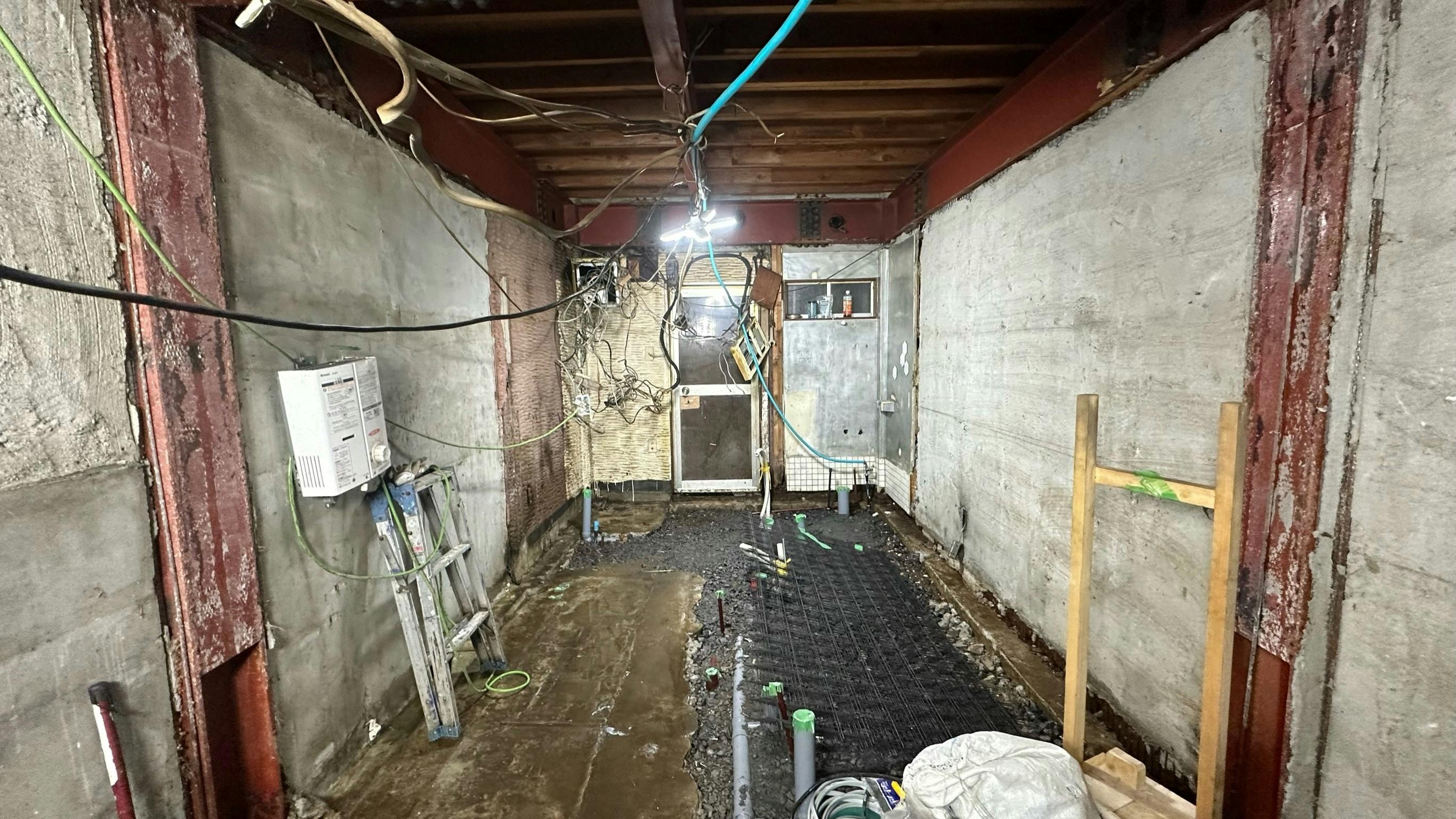 事前に打ち合わせを重ねるのは、まさにこの時点で設備の位置が決まっててこその排水パイプの位置なんですね。