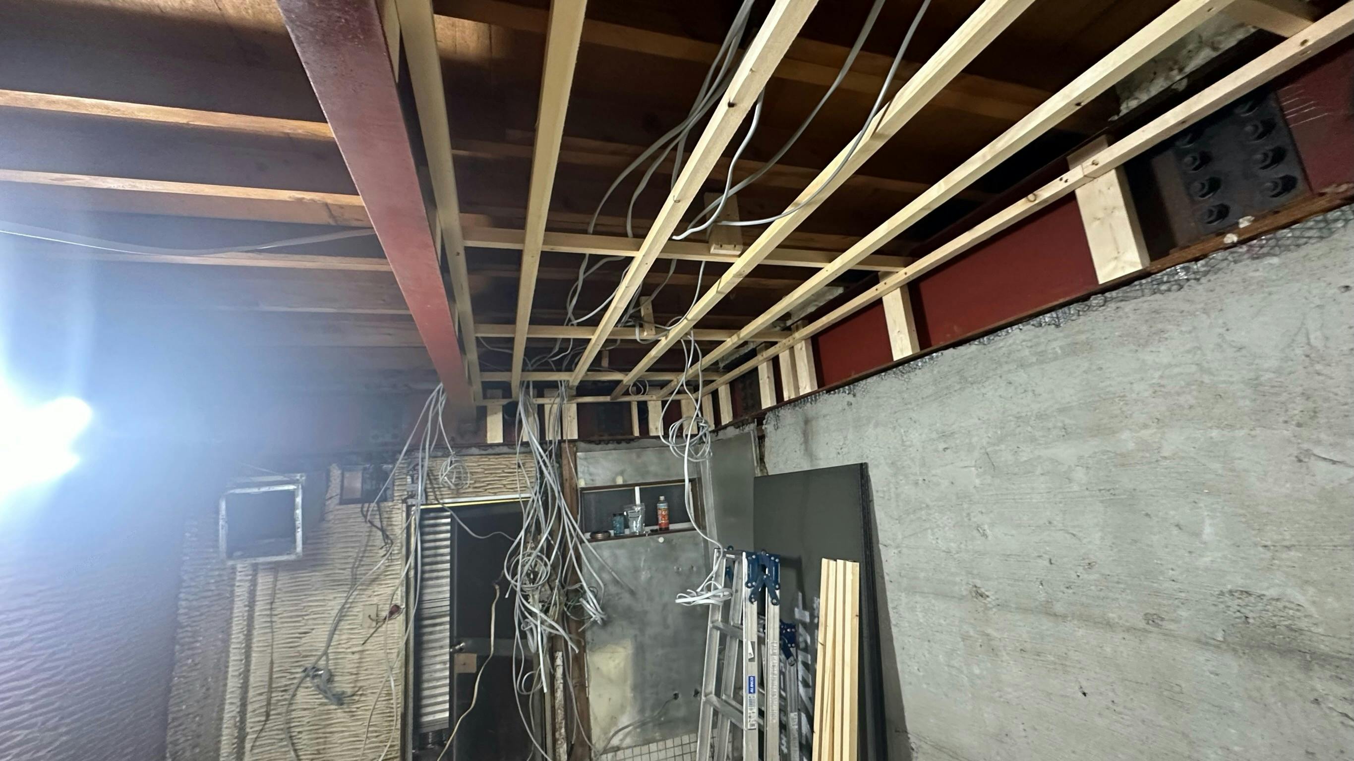 昇竜拳や槍の一撃などで簡単にぬいてしまう恐れもあります、音の問題もありますので木の枠組みを作りそこに断熱、防音材を仕込んでいき蓋をします。