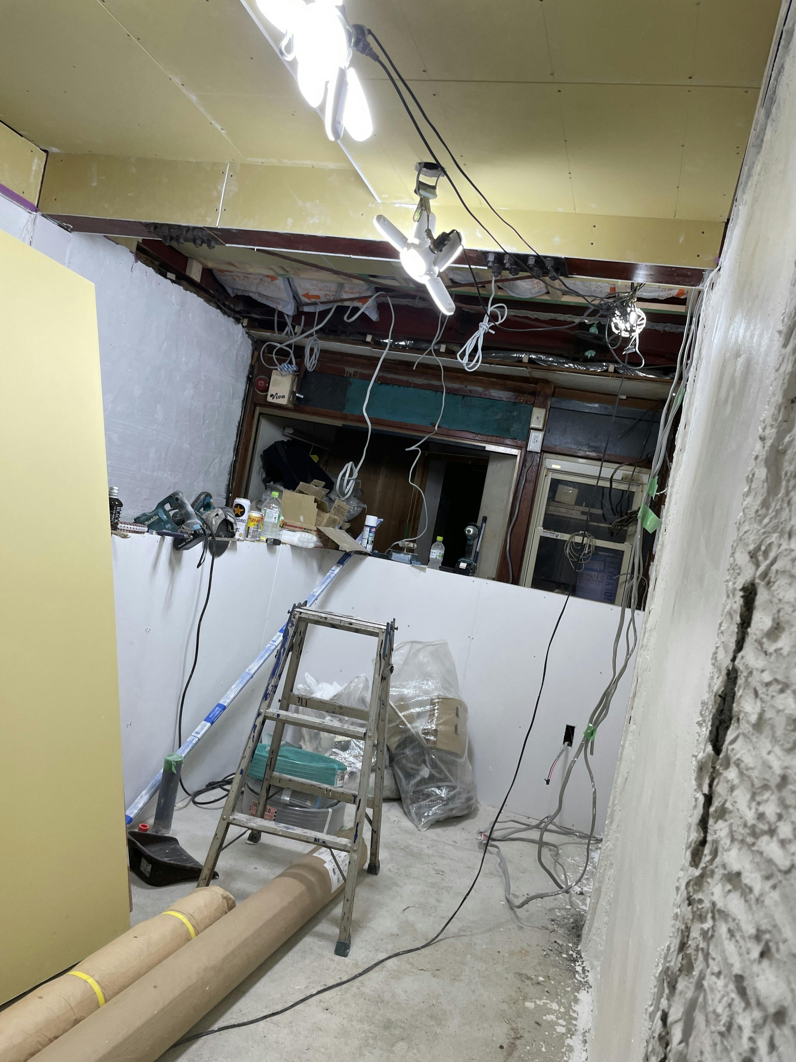 しかし我々は敢えての綺麗な仕上がりを目指さず、元のコンクリ壁面の凹凸を利用する事にした事を以前ご報告しました。