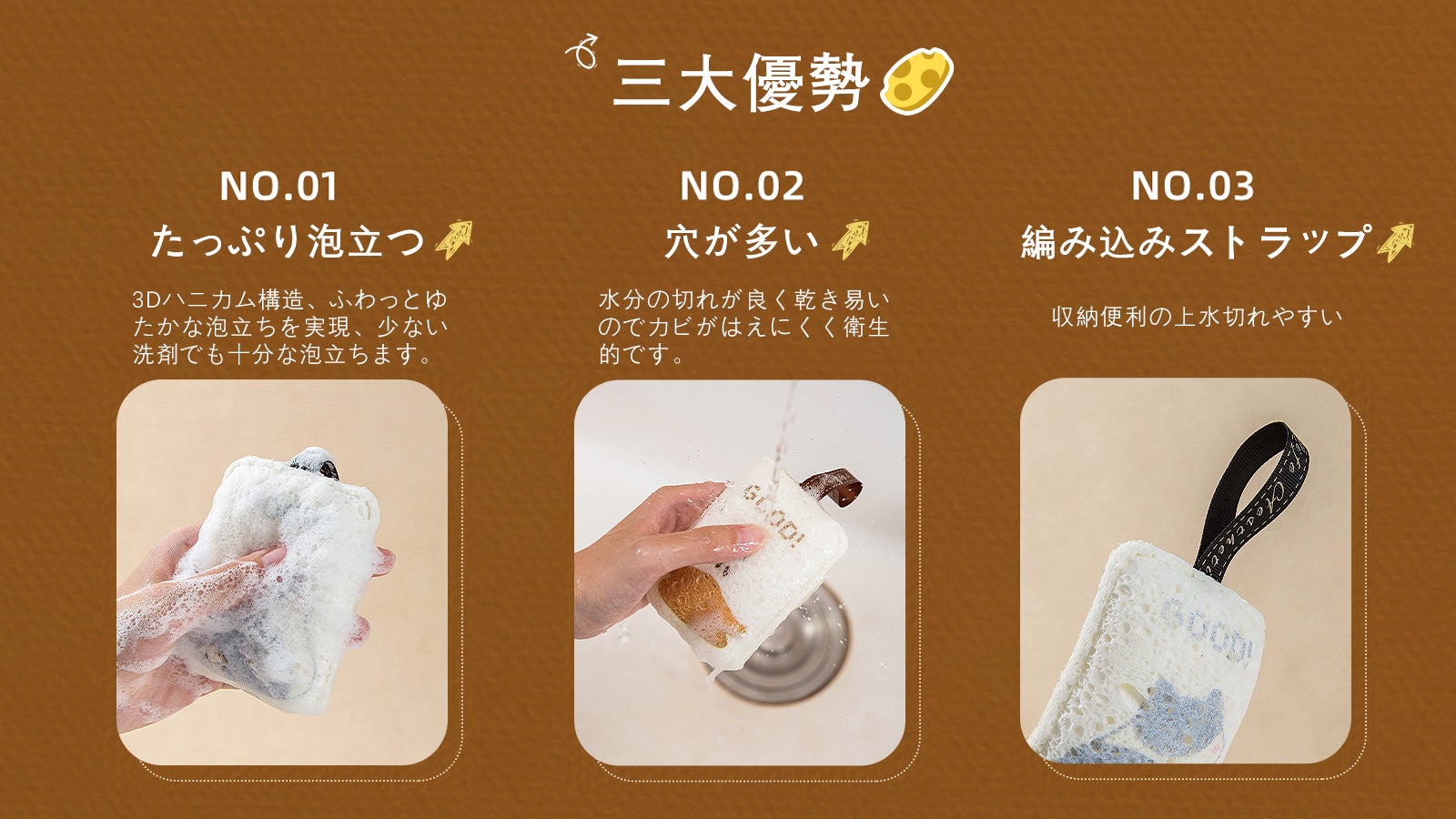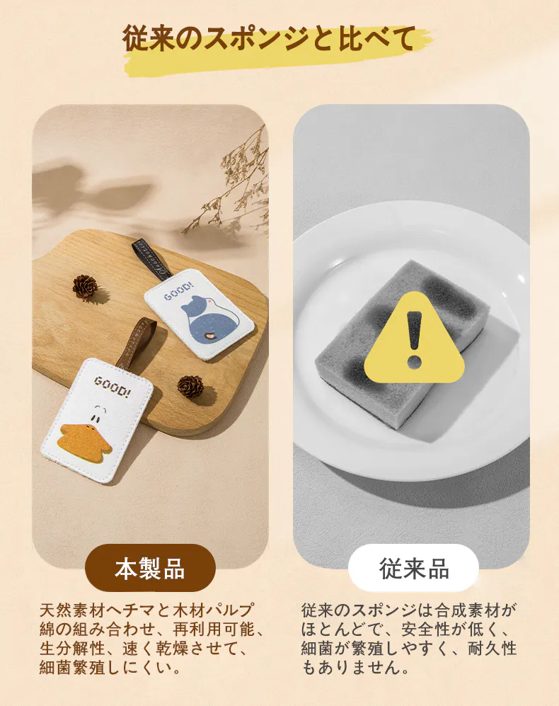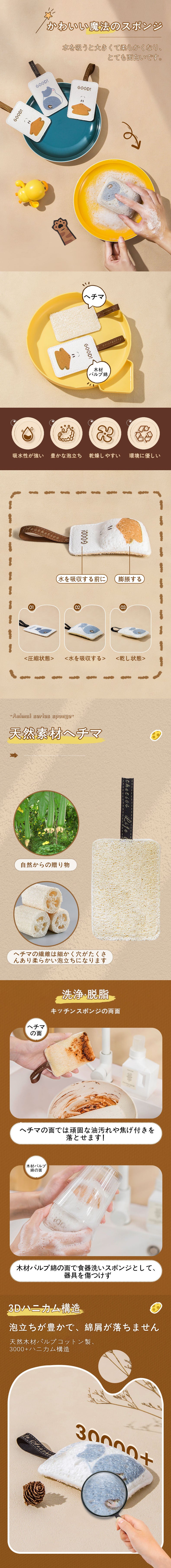 かわいい漫画の圧縮食器洗いスポンジ、天然素材ヘチマと木材パルプ綿の組み合わせ、豊かな泡立ち、速く乾燥させて、細菌繁殖しにくく衛生的です。家事にもっと楽しくするために、こういう画期的な商品を皆さんのお手元にお届けしたい、CAMPFIRE