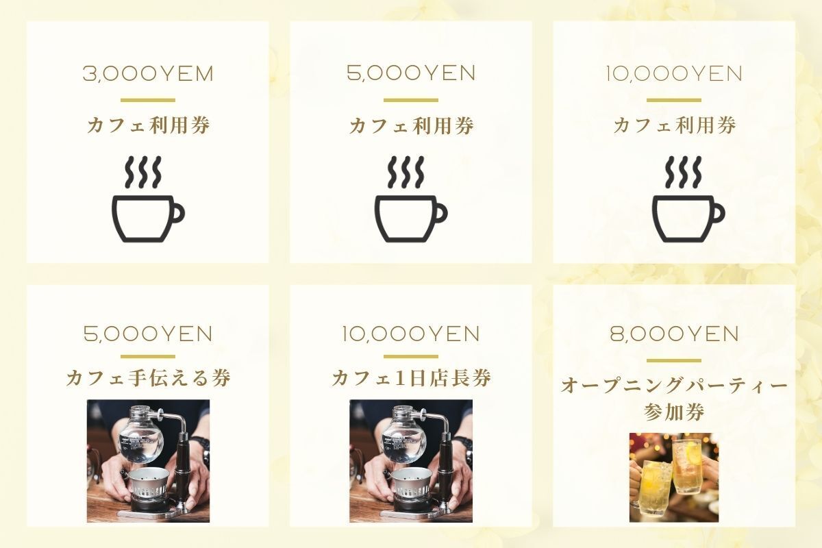 2/15(金)のお店のお披露目となる、「オープニングパーティー参加券」をリターン品として出しています。
