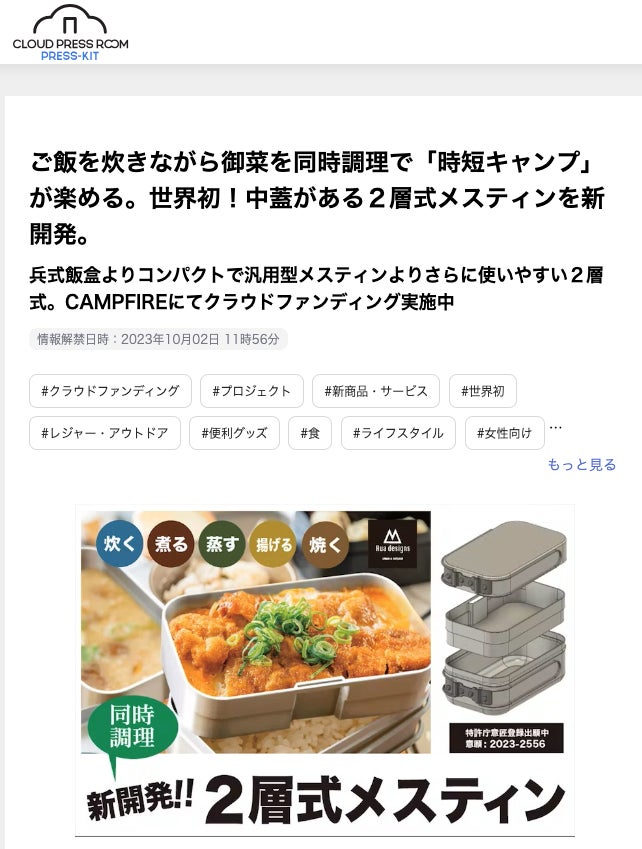 RUA-aoyama の製品を以前、ご購入していただいた皆様にお知らせクラウドファンディングにて目標金額352%超の皆様からのご支援をいただきました「2層式メスティン」がいよいよ一般販売をスタートすることになりました。これも一重にみなさまのご支援あってのことと御礼申し上げます。お買い忘れになった方でも現在Amazonで一般公開販売されておりますので、ぜひご利用いただけると幸いです。===============================================Amazonでのご購入はこちらからhttps://amzn.asia/d/8V13g5s===============================================【SNS拡散のお願い】現在クラウドファンディングで購入されてご使用されている方々へのお願いです。ご使用されたご感想や、使用方法のアレンジ、アイデアなどをぜひSNSご投稿よろしくお願いいたします。ぜひ購入を検討されている方への参考になると思いますのでよろしくお願いいたします。【YouTobeご紹介いただきました】早速応援購入いただいた支援者様がYouTube動画をアップしてくださいました。ご使用方法の参考になると思いますのでぜひご視聴ください。https://www.youtube.com/watch?v=S-kCjcG_ulQ&t=11shttps://www.youtube.com/watch?v=AxmUIVS6CLk