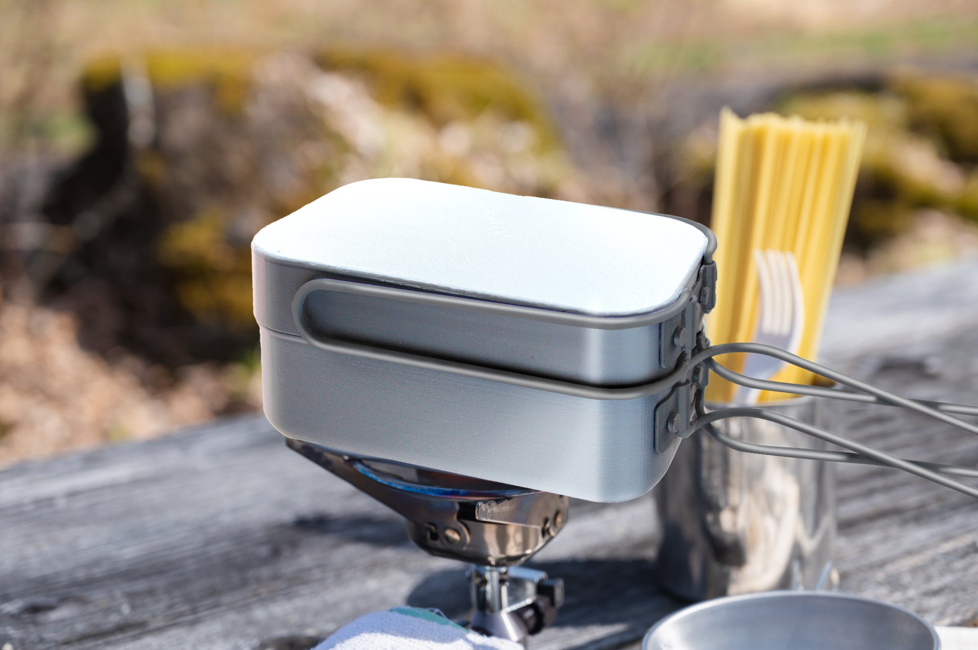 メスティンとは英語で「飯盒」の意味で、兵式飯盒をよりコンパクトにしたお弁当箱のような四角い形状のアルミ飯盒のことです。キャンプや登山、ツーリングなどの野外調理の際に大変便利で、大人気の製品となりました。