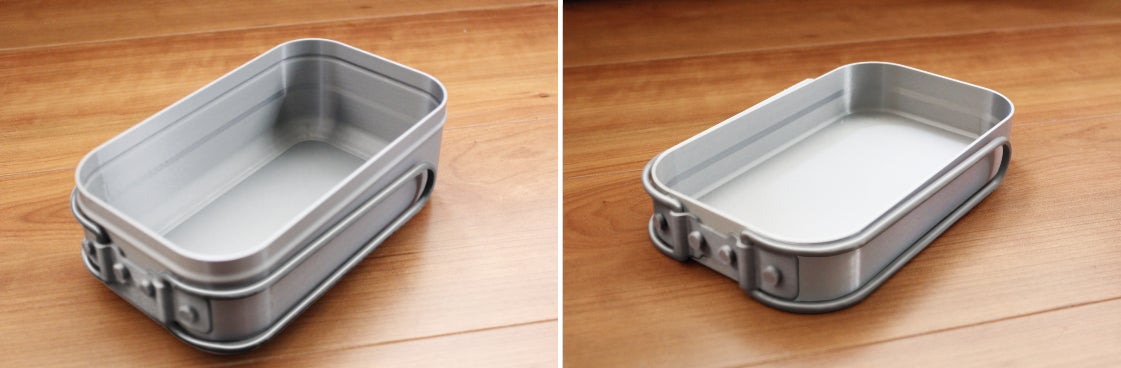 ※従来品のメスティンには本体にしか持ち手(ハンドル)が付いていないものが多く、上蓋で調理したり、食器として使用する際にはすこし不便です。弊社開発の「2層式メスティン」は本体と上蓋の両方に折りたたみ収納式の持ち手(ハンドル)が装着されているため、本体のみならず、上蓋もクッカーや食器としてご利用いただく際に大変便利な構造となっております。
