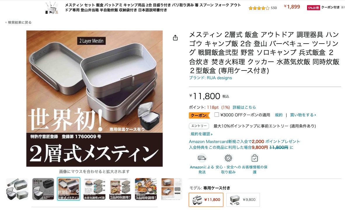 2024/02/28 10:30RUA-aoyama の製品を以前、ご購入していただいた皆様にお知らせクラウドファンディングにて目標金額352%超の皆様からのご支援をいただきました「2層式メスティン」がいよいよ一般販売をスタートすることになりました。これも一重にみなさまのご支援あってのことと御礼申し上げます。お買い忘れになった方でも現在Amazonで一般公開販売されておりますので、ぜひご利用いただけると幸いです。===============================================Amazonでのご購入はこちらからhttps://amzn.asia/d/8V13g5s===============================================【SNS拡散のお願い】現在クラウドファンディングで購入されてご使用されている方々へのお願いです。ご使用されたご感想や、使用方法のアレンジ、アイデアなどをぜひSNSご投稿よろしくお願いいたします。ぜひ購入を検討されている方への参考になると思いますのでよろしくお願いいたします。【YouTobeご紹介いただきました】早速応援購入いただいた支援者様がYouTube動画をアップしてくださいました。ご使用方法の参考になると思いますのでぜひご視聴ください。https://www.youtube.com/watch?v=S-kCjcG_ulQ&t=11shttps://www.youtube.com/watch?v=AxmUIVS6CLk もっと見る【御礼】目標達成にて終了