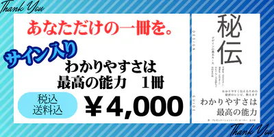 [リターン内容]・『わかりやすく伝えるための秘密のレシピ、教えます。わかりやすさは最高の能力 』サイン入り1冊をお届け致します。※送料も含まれております。(海外の方は別途ご相談ください)