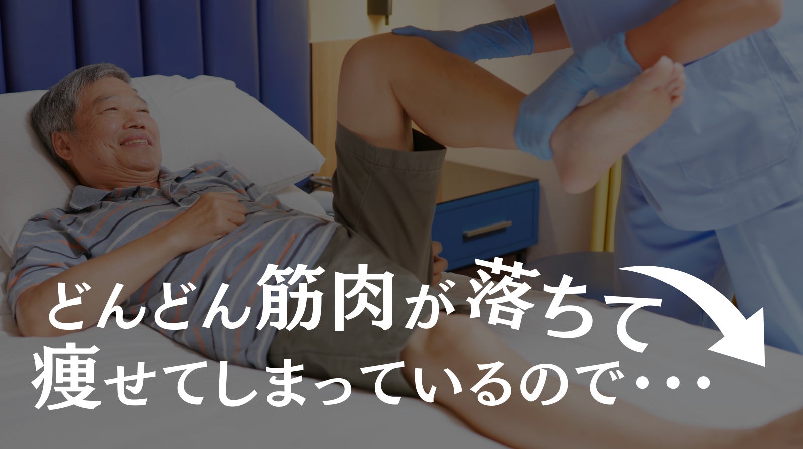 筋肉が落ちた原因は、廃用症候群によるもの。廃用に伴って痛みも出ている。このままだと、動かない→筋力が落ちる→痛みが生じる→痛いから動かない。と悪循環が生まれてしまうことは必至。