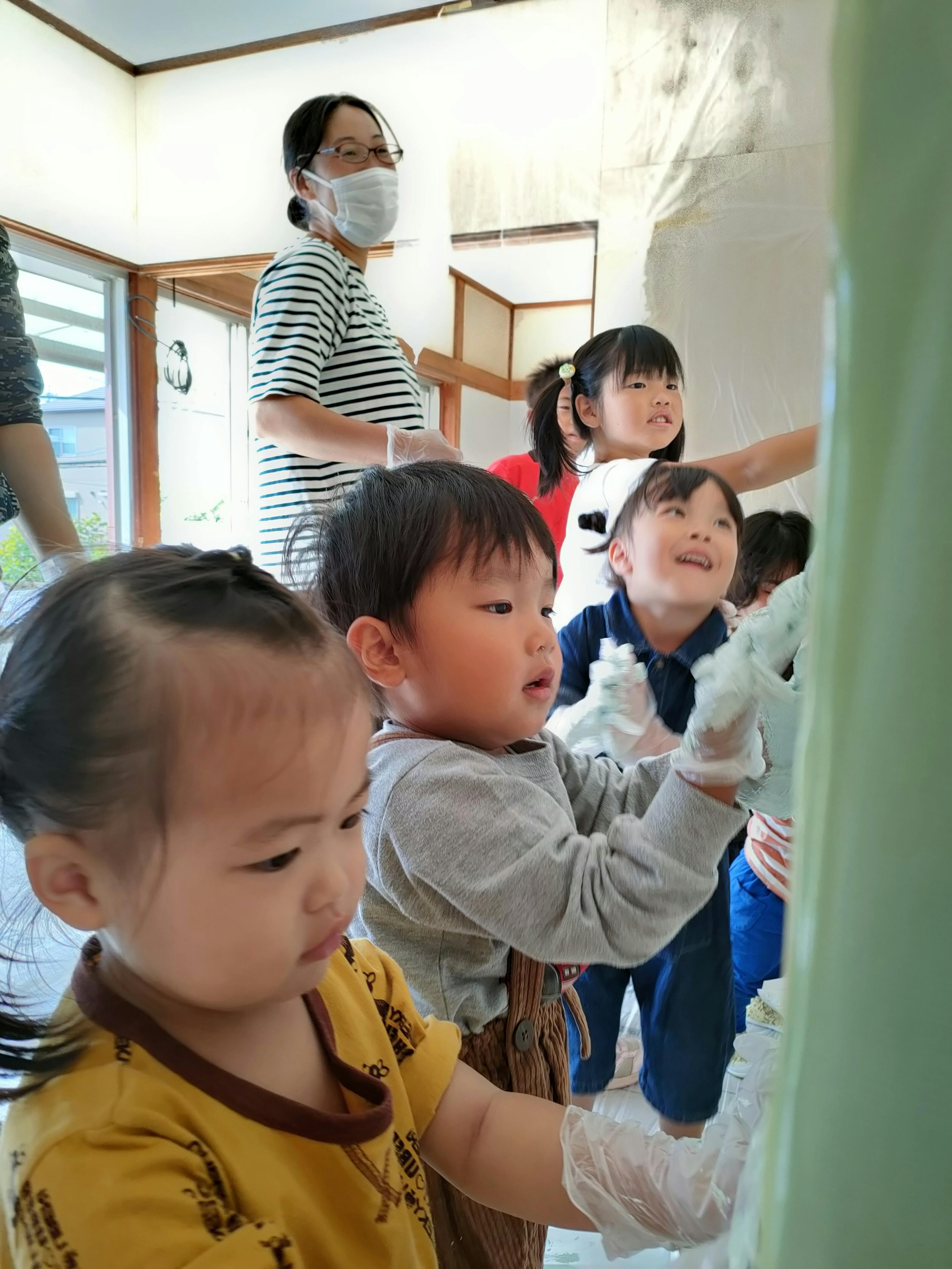 みんなで完成させた壁には、かわいい手形がペタペタ残ってます。