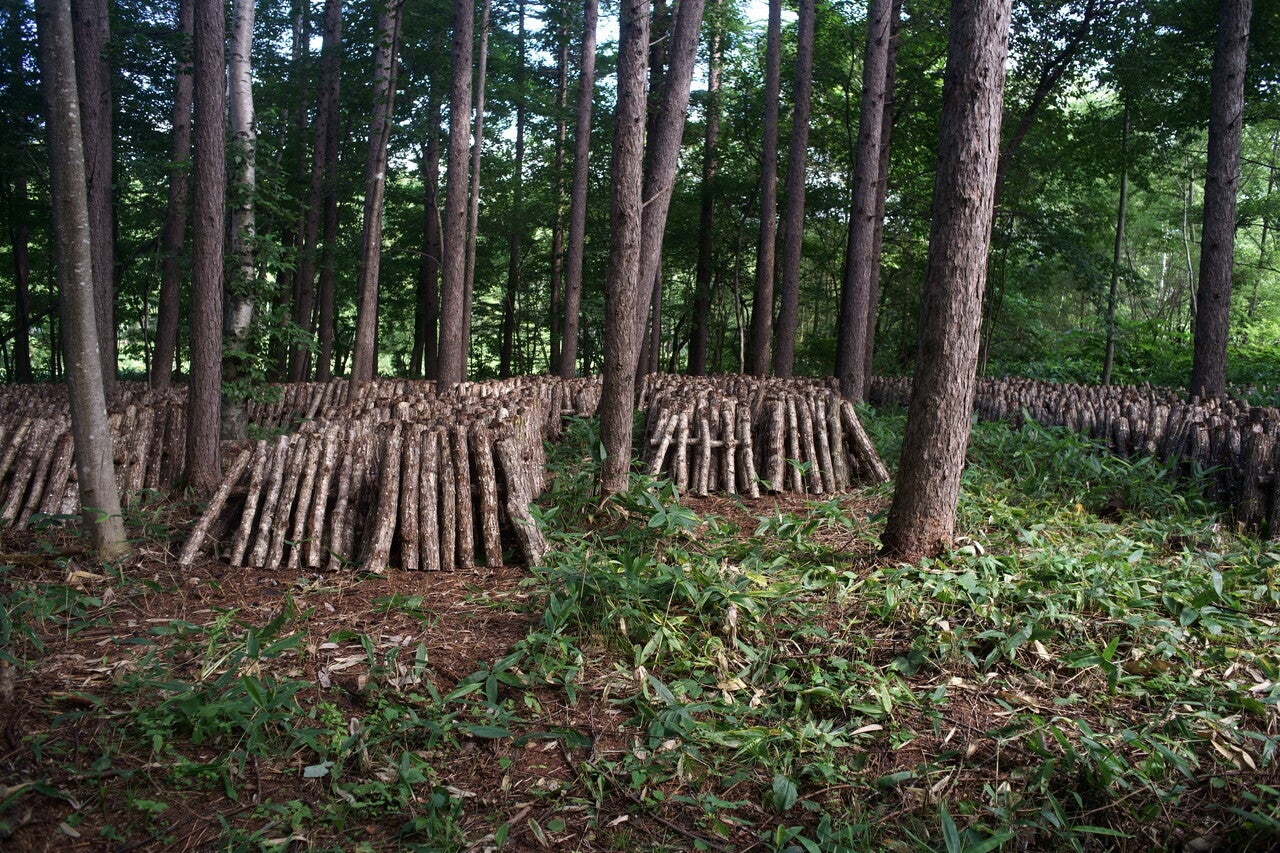 榾木は森の中で1.5年以上の時間をかけて腐朽させました。 栽培に必要な水は日高山系からの地下水を利用しています。