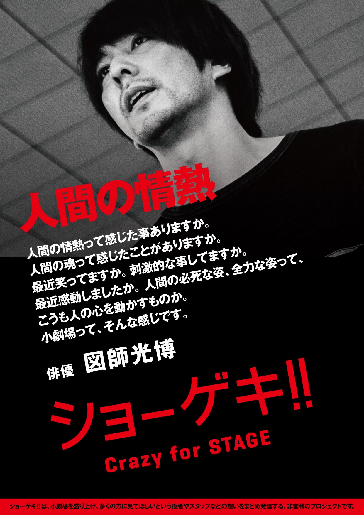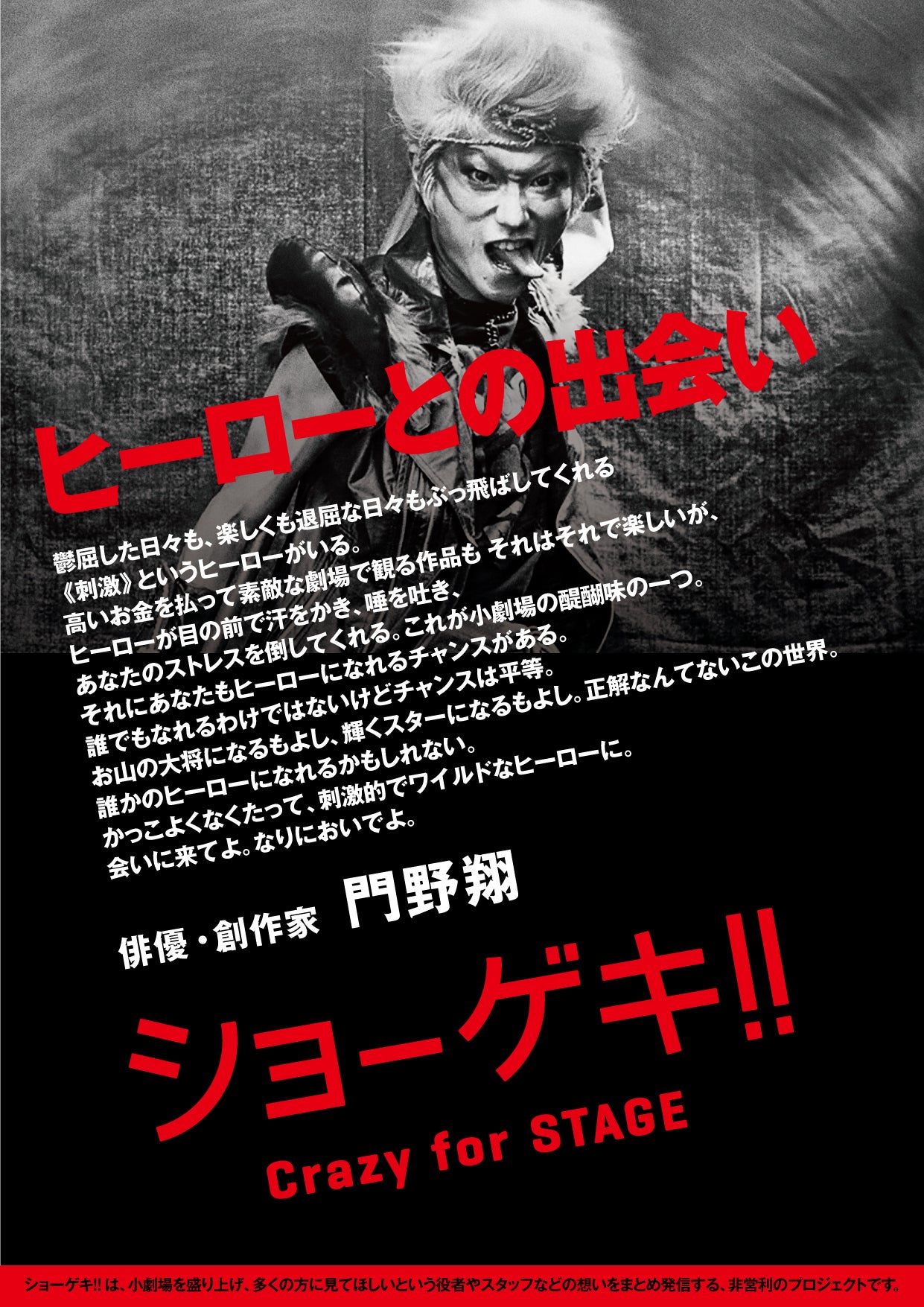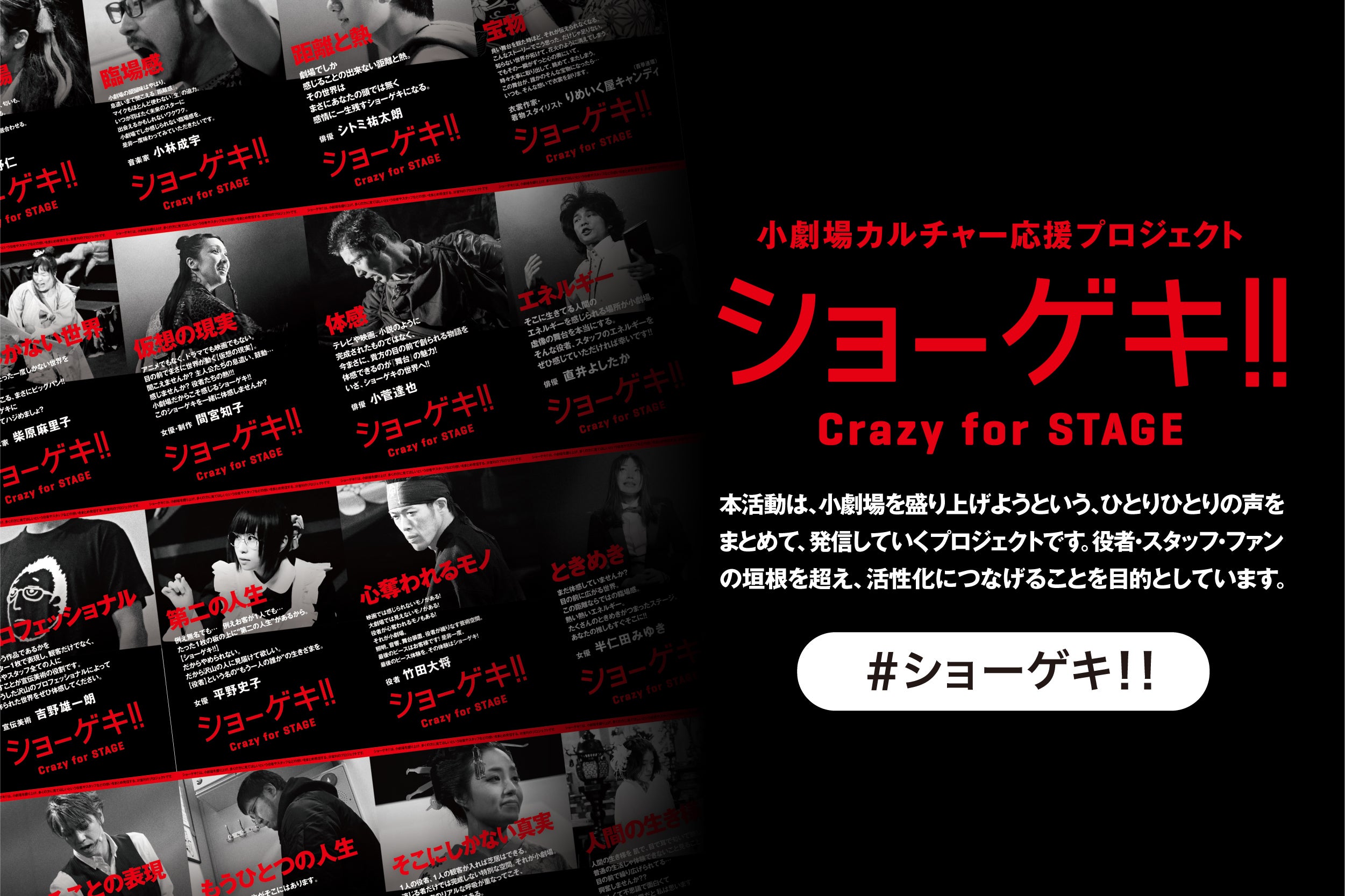 「ショーゲキ!!」は小劇場関係者と有志による、小劇場を盛り上げ、多くの方に見ていただきたいという小劇場に関わる役者やスタッフなどの想いをまとめ発信する、「非営利」のプロジェクトです。