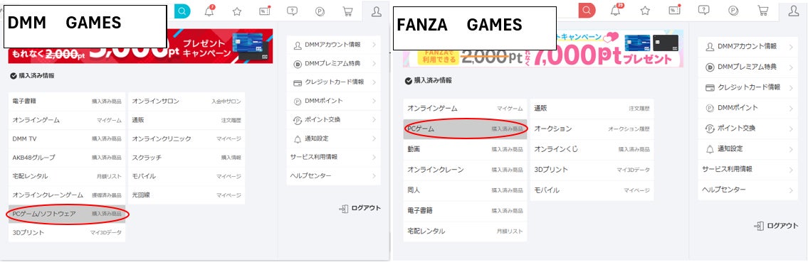 ※DMM GAMESは、「PCゲーム/ソフトウェア 購入済み商品」