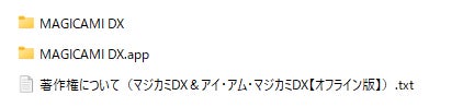 解凍が終わりますとPC内に「マジカミDX&アイ・アム・マジカミDX(オフライン版)」※マジカミDXの場合 というファイルが作成されます↓