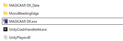 ファイルを開き「MAGICAMI DX」→「MAGICAMI DX.exe」を起動するとゲームがスタートします。※Windowsの場合