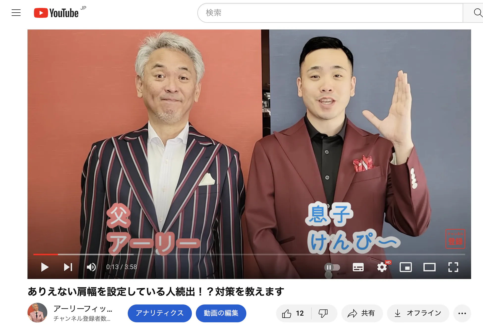 私は「日本のオーダースーツの技術を文化にする」為に、Youtubeでオーダースーツの技術的な内容を父の田中 東一郎(アーリー)と発信しています。チャンネル登録者は1,700人以上。