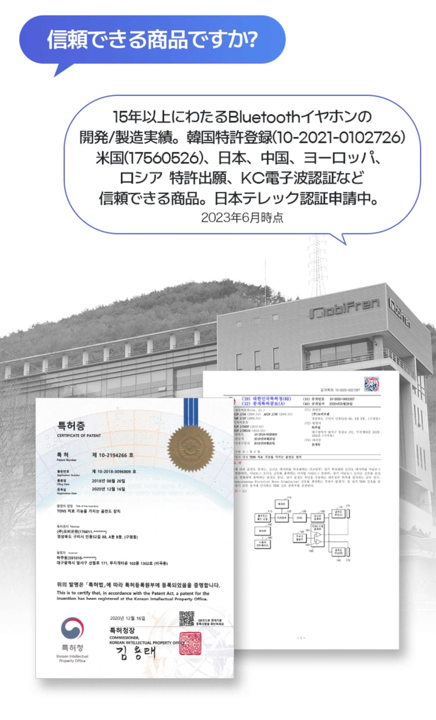 ・特許技術:アメリカおよび韓国登録完了、日本とヨーロッパなどは出願中
