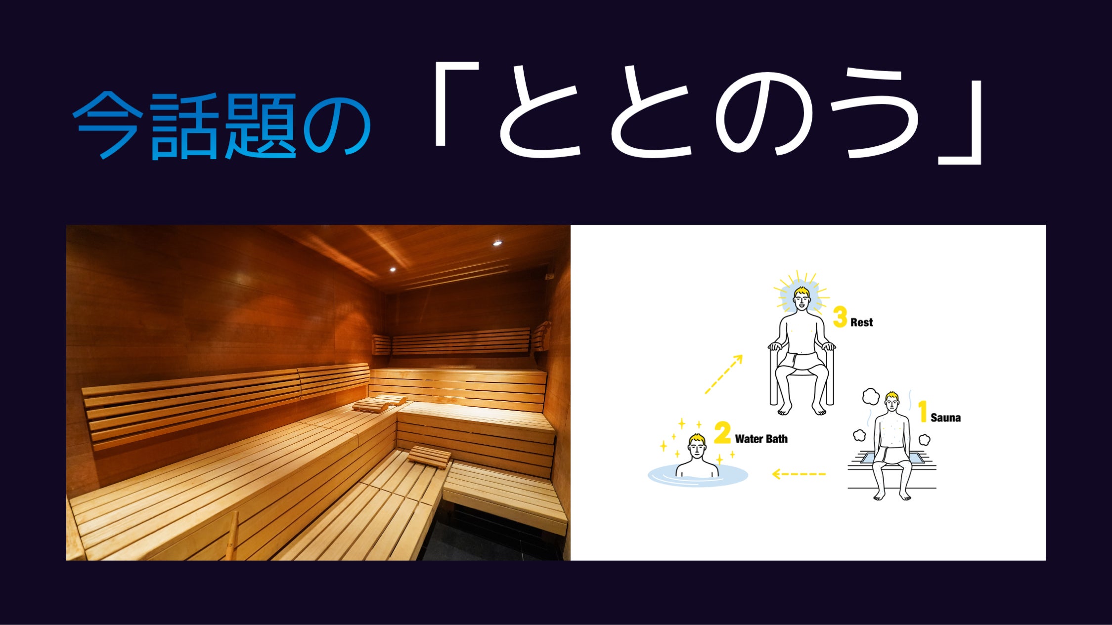 近年ブームとなっている「サウナ、水風呂、休憩を繰り返すことにより、心身ともに整った状態を指すこと」を言います。