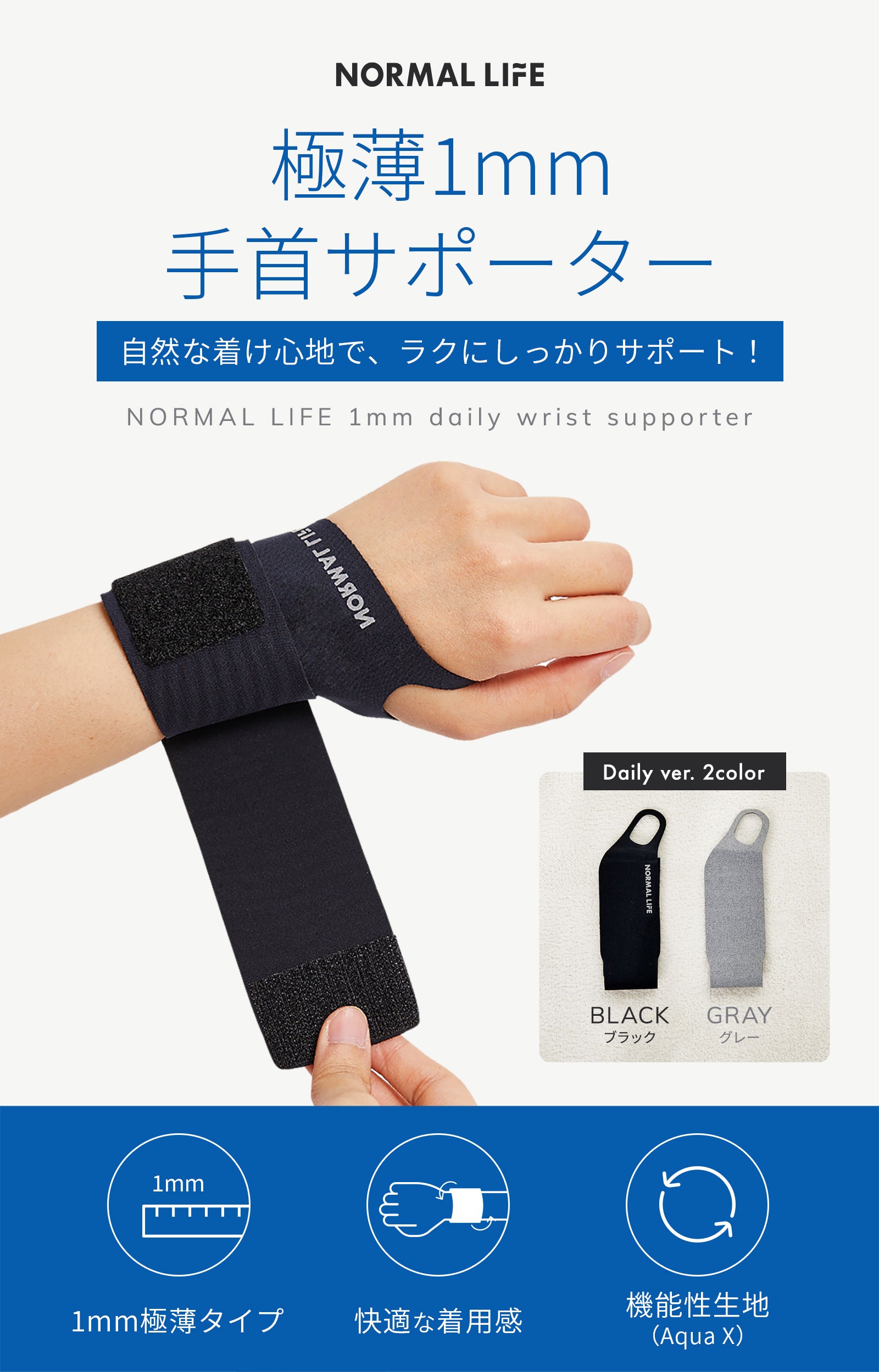 【商品名】NORMAL LIFE 極薄1mm daily 手首サポーター