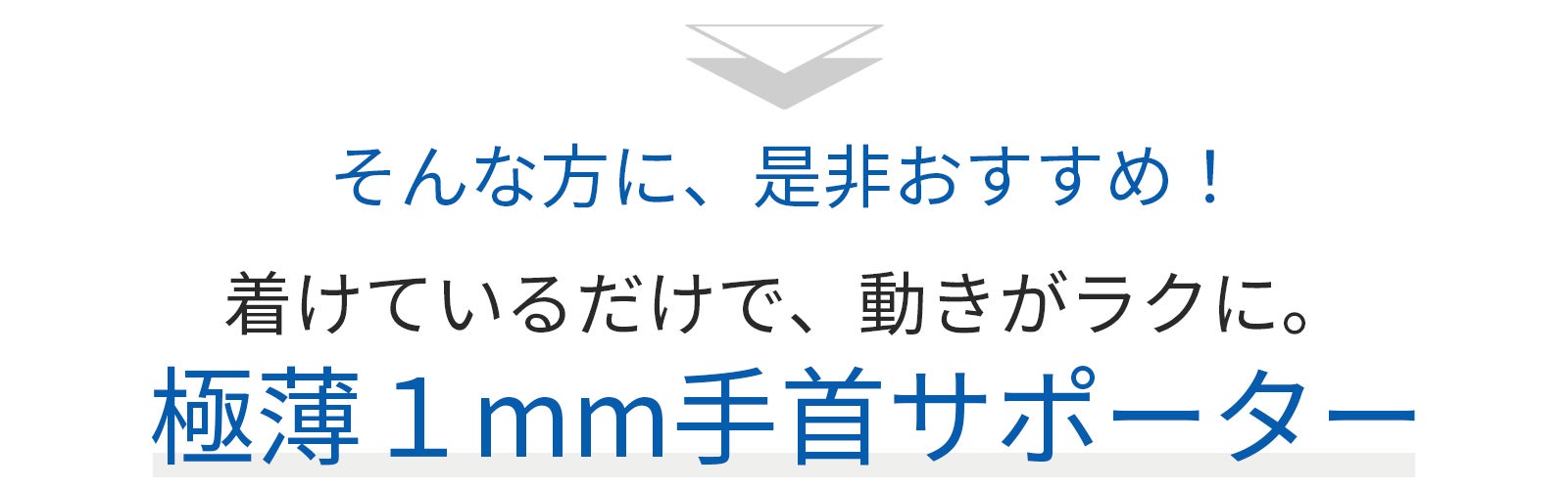 本製品は、毎日酷使し続けている手首をより自然にラクにサポートしたいという想いから開発されました。手首と親指を固定する「指サポーター一体型」で、わずか1㎜にもかかわらず、しっかりと手首を固定し、スムーズな動きをサポートします。