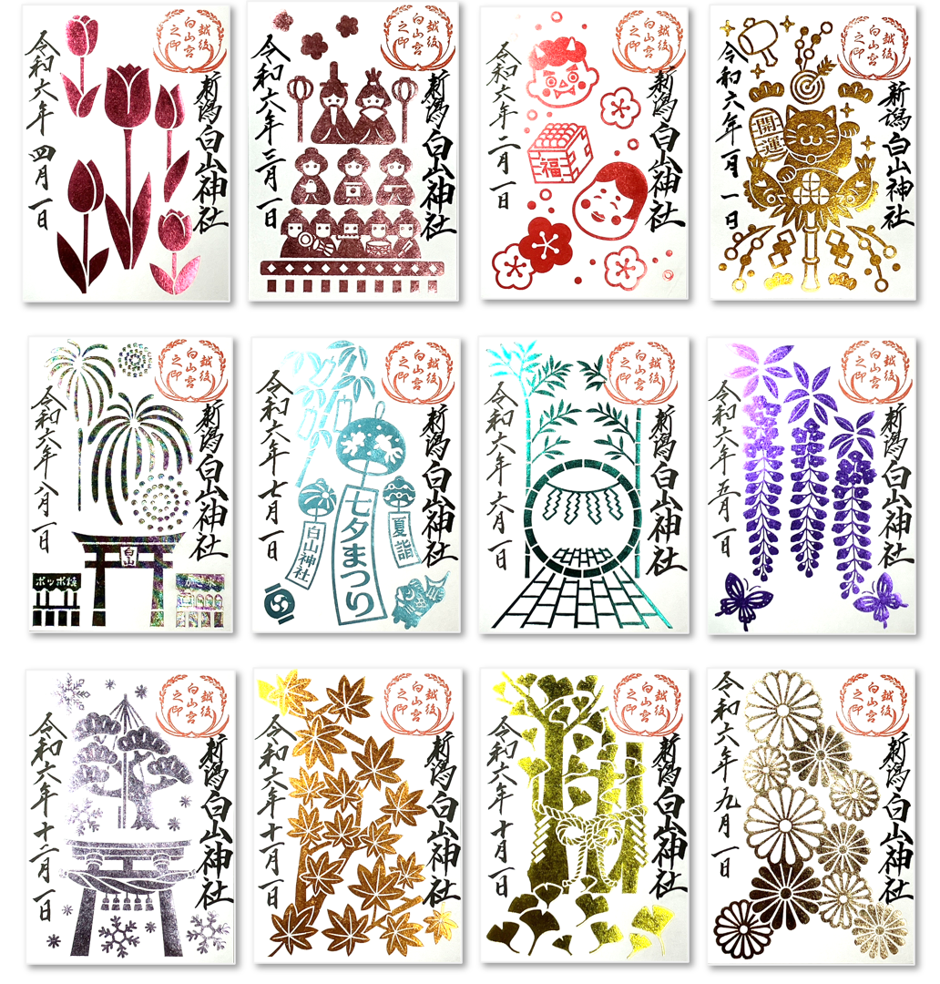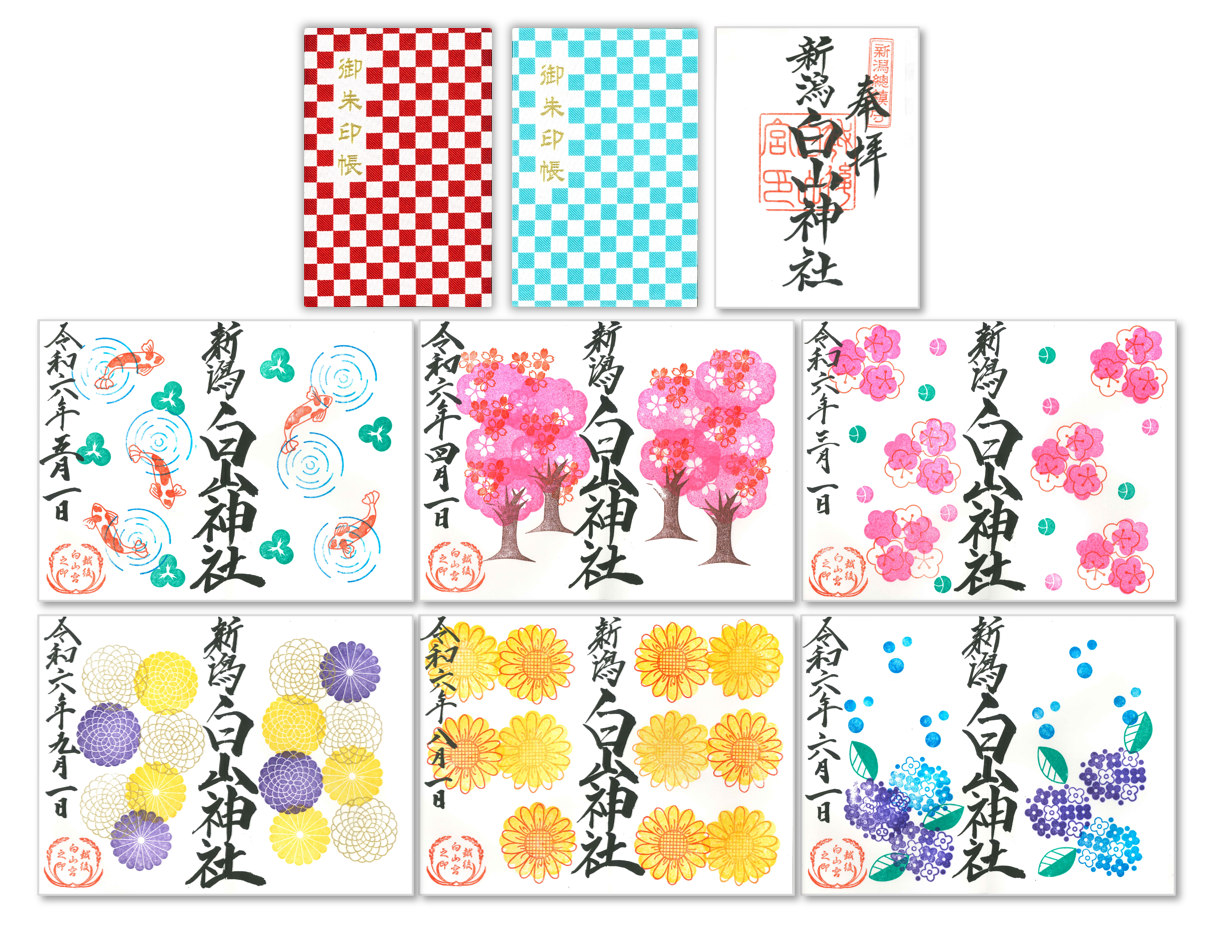 ※白山神社御朱印、3月・4月・5月・6月・8月・9月の季節の御朱印が書かれています。