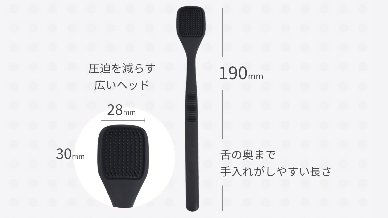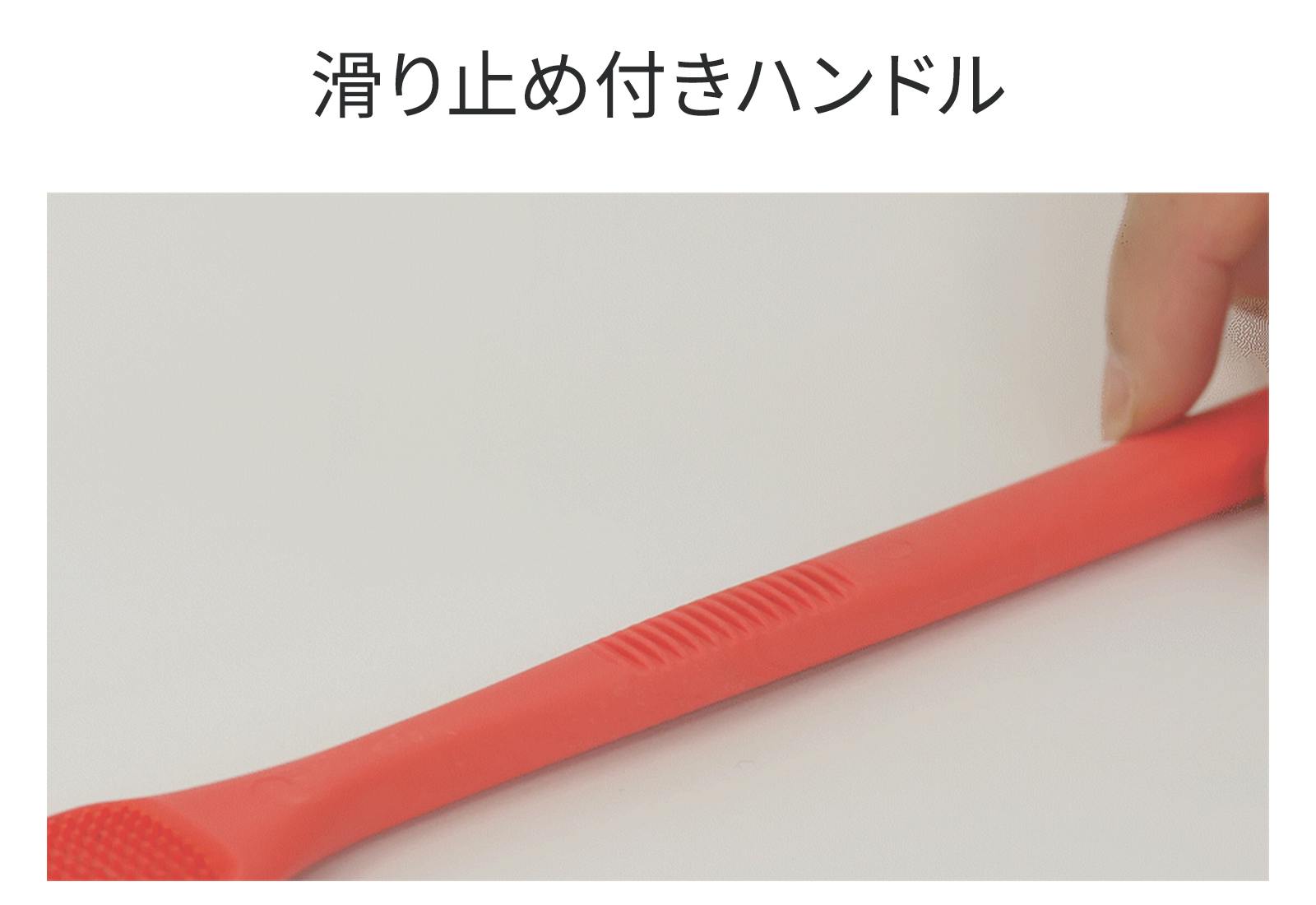 本製品は、前面は「微細突起ブラシ」として、汚れ(舌苔)をかき出し、裏面は「スクラッパー」として、汚れを拭き取る2WAYタイプの舌クリーナーです。舌を撫でるだけで、効率良く舌を磨くことができます。